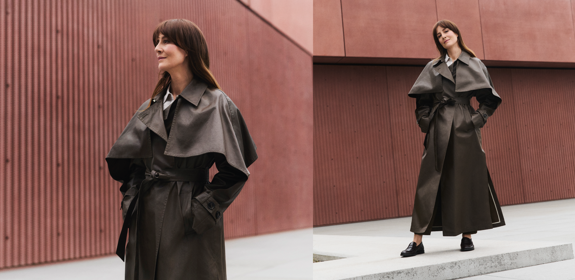 Ciemnozielony płaszcz z jedwabiem doubleface