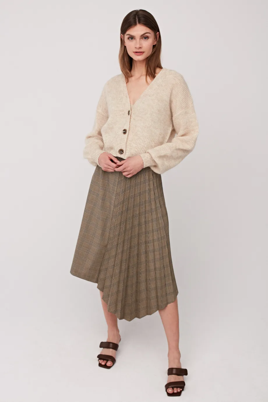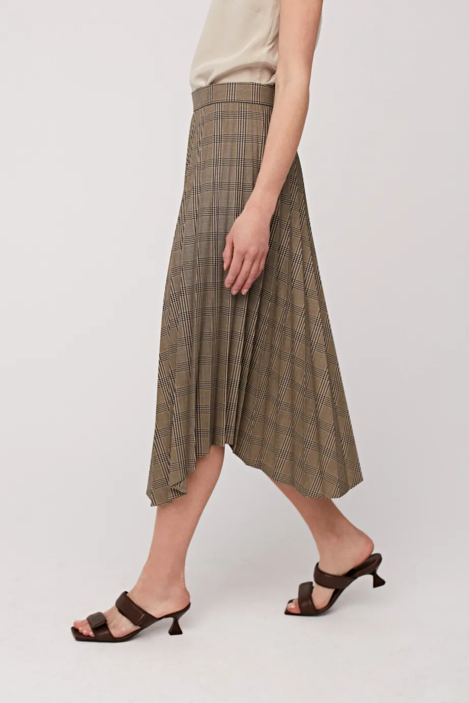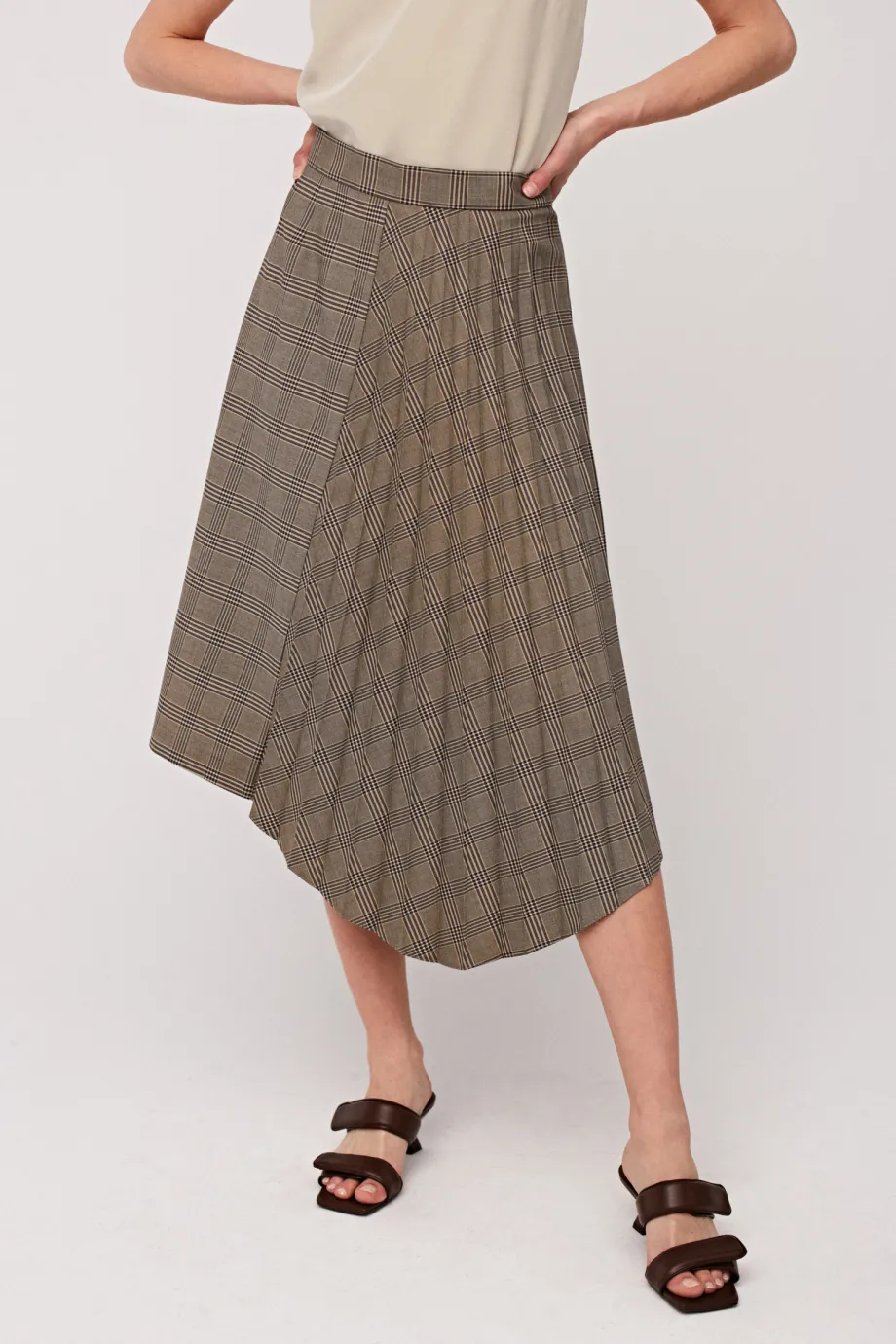 Eleganckie spódnice w kratę to ponadczasowy element damskiej garderoby. Kraciasty wzór od dawna dodaje stylizacjom wyjątkowego charakteru i zawsze prezentuje się z klasą. Właśnie dlatego nasza brązowa spódnica w kratę to niezbędny element garderoby każdej kobiety, która ceni sobie atrakcyjny wygląd i niebanalne rozwiązania. Spódnica z asymetrycznym dołem i ciekawym plisowaniem zdecydowanie zasługuje na uwagę - zestawiona z basicowym topem lub T-shirtem tworzy wyjątkowy efekt z odrobiną nonszalancji.