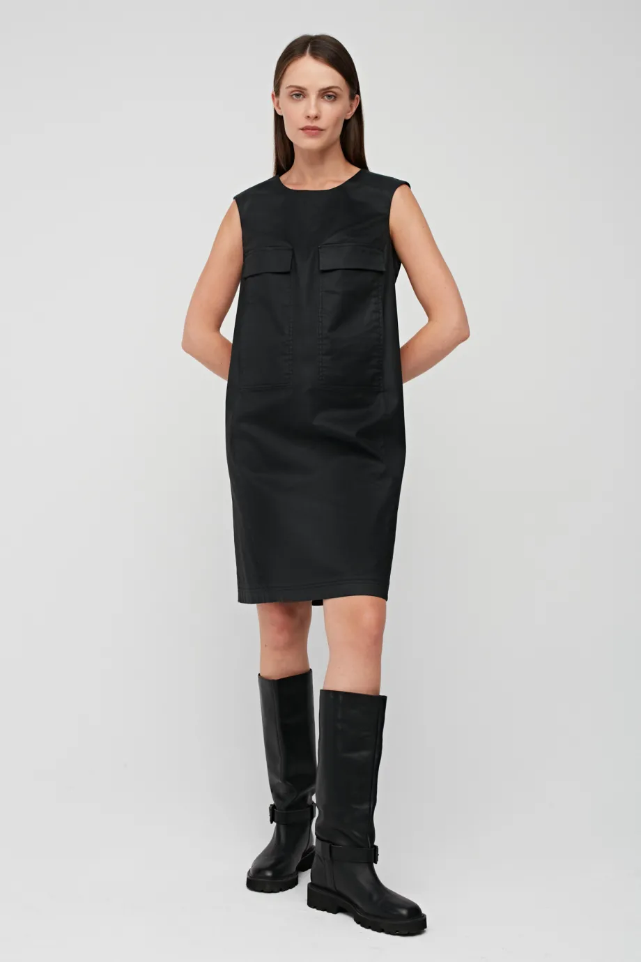 Mała czarna sukienka z woskowanej bawełny