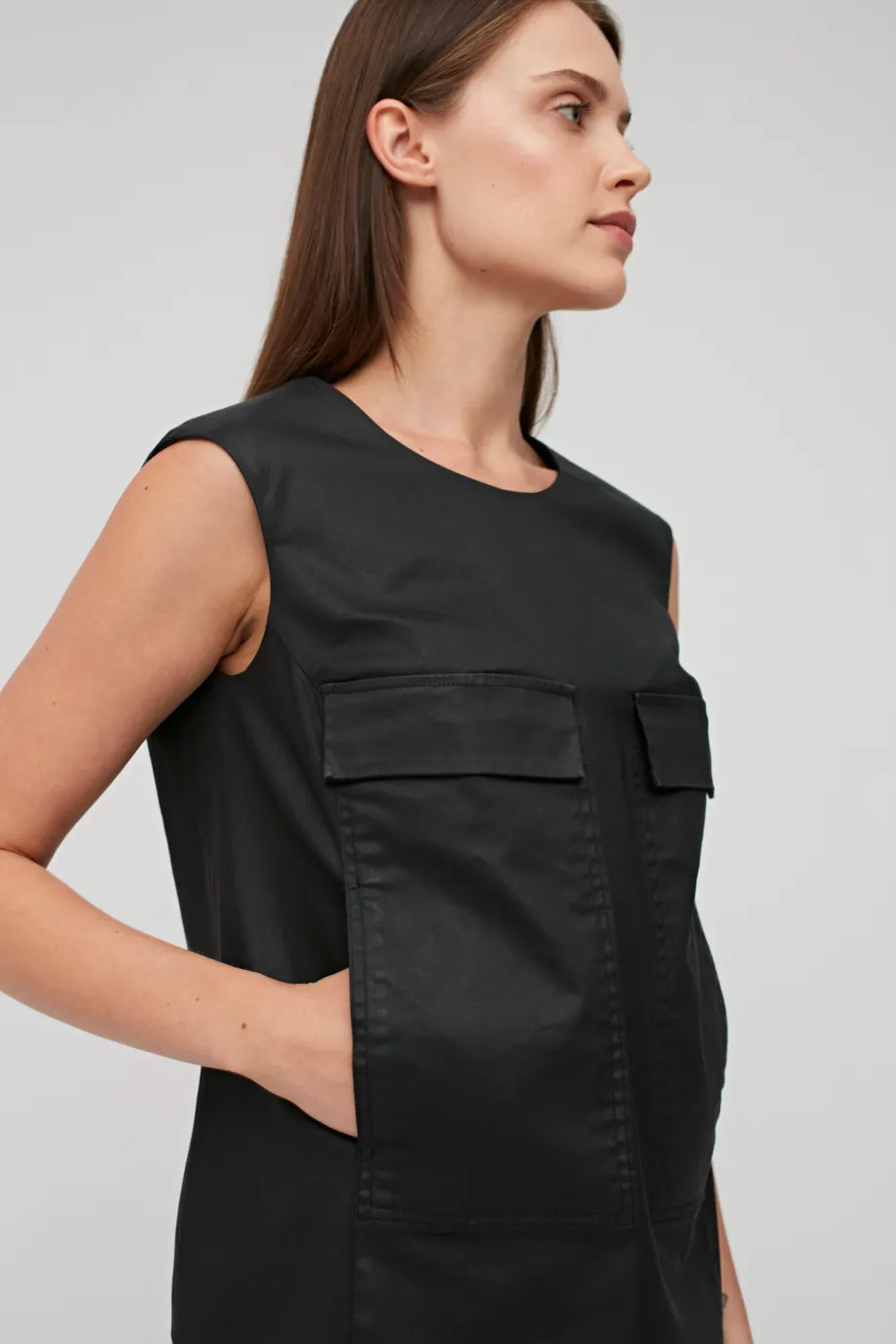 Czarna sukienka tuba to ponadczasowy fason, pojawiający się w kolekcjach wielu projektantów - emanuje elegancją i szykiem i zawsze wygląda stylowo. Na uwagę zasługują też kieszenie, które dodają całości nonszalancji, a nasza bawełniana sukienka z kieszeniami staje się dzięki nim swobodną i nowoczesną propozycją na wiele okazji. Dyskretne zapięcie z tyłu na suwak nie zakłóca linii sukienki, dzięki czemu prezentuje się minimalistycznie i stylowo.