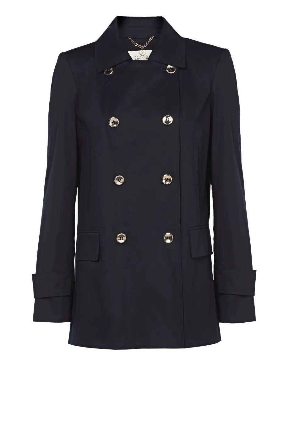 Dwurzędowa kurtka damska doskonale sprawdzi się zarówno w eleganckich, formalnych, jak i codziennych stylizacjach. Każdy detal naszej kurtki został zaprojektowany i wykonany z dbałością o najwyższą jakość. Tę granatową kurtkę damską wyróżniają pagony na rękawach, dwurzędowe zapięcie i kieszenie, dzięki czemu możesz cieszyć się nie tylko doskonałym wyglądem, ale też wyjątkowością, która będzie Ci towarzyszyć podczas noszenia tego modelu. Podaruj sobie odrobinę luksusu i podkreśl swój styl produktami od Patrizia Aryton.
