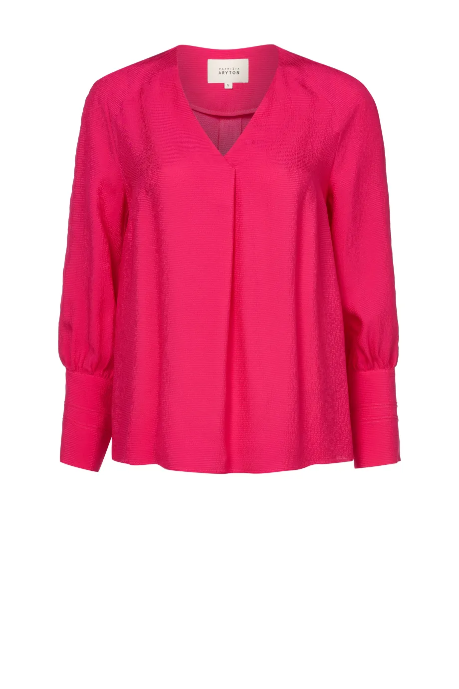 Amarantowa bluzka z długim rękawem i dekoltem V