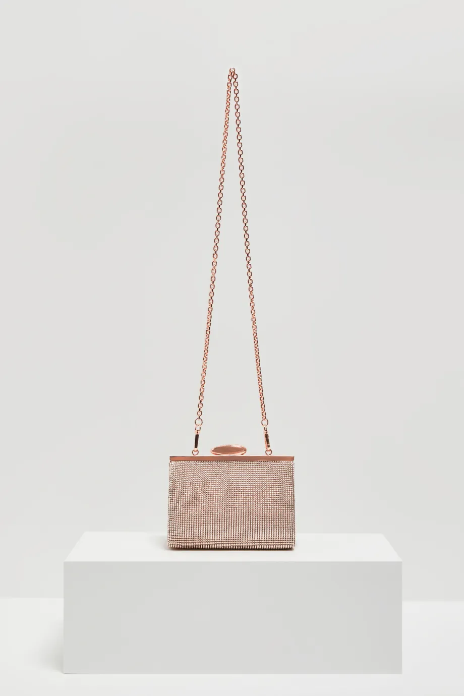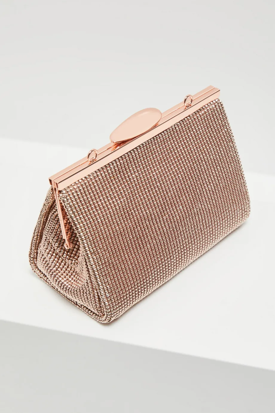 - Mini torebka wykonana z metalowej siatki w kolorze rose gold