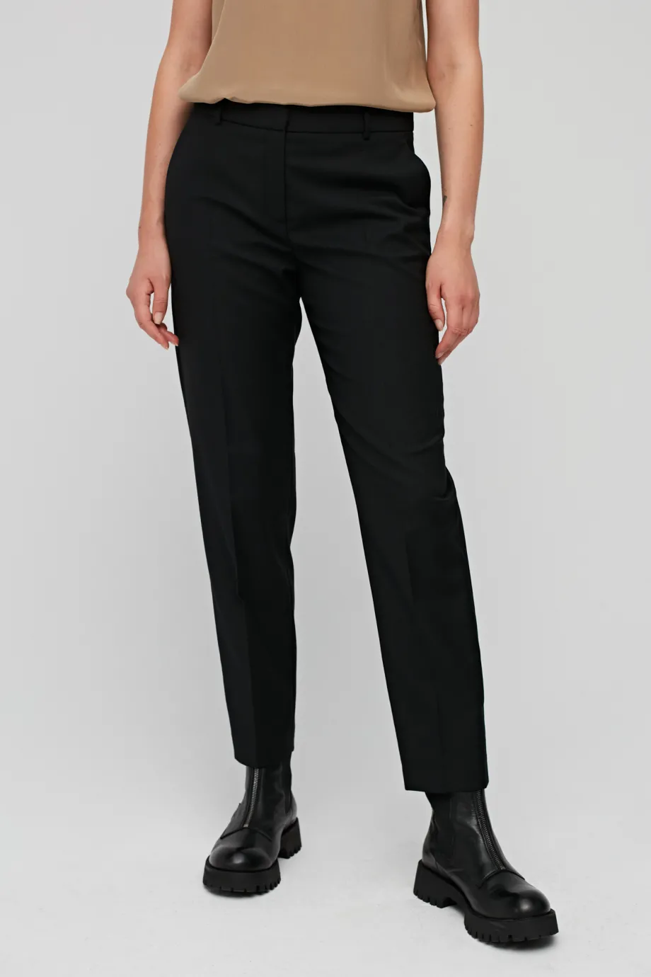 Granatowe spodnie do garnituru Patrizia Aryton wyróżniają prosta forma i klasyczny minimalizm. Regularna talia to najwygodniejsza i najbardziej korzystna opcja dla kobiet o każdym typie figury. Delikatnie zwężana nogawka subtelnie wysmukla sylwetkę. Do pozostałych cech rozpoznawczych tego modelu należą praktyczne kieszenie, szlufki, kryty zamek i prasowanie w kant.