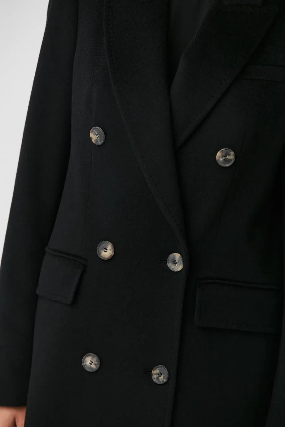 - Ozdobne stebnowanie na krawędziach płaszcza