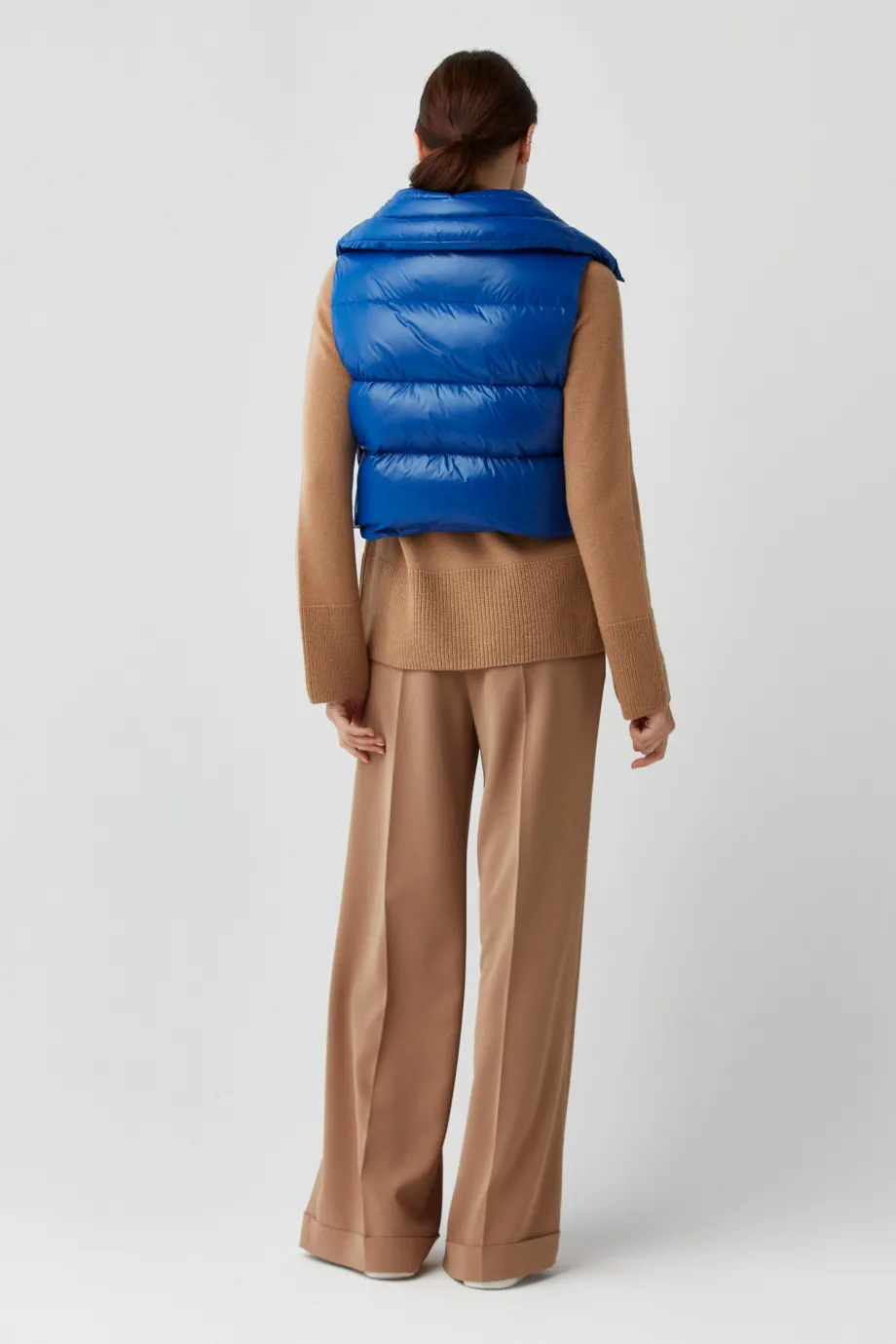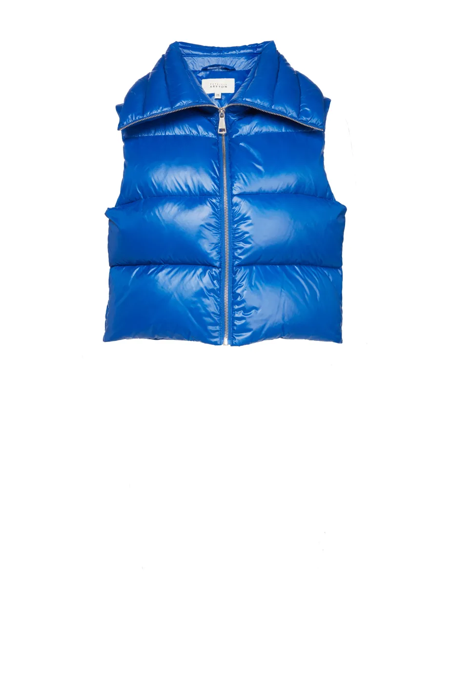 Kobaltowa kamizelka na zamek Patrizia Aryton występuje w jednym, uniwersalnym rozmiarze o optymalnych wymiarach. Została uszyta z wytrzymałego i oddychającego nylonu, który chroni przed wilgocią z zewnątrz i dobrze utrzymuje na miejscu naturalne wypełnienie. Jest też bardzo odporny na uszkodzenia mechaniczne czy zmienne warunki atmosferyczne. Naturalny puch kaczy i pierze zastosowane w idealnych proporcjach stanowią skuteczną izolację od chłodu.
