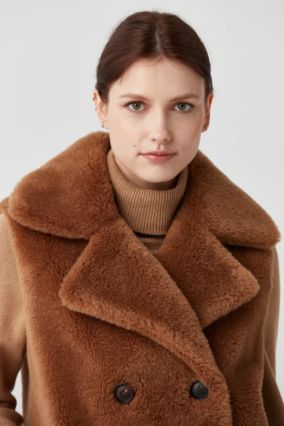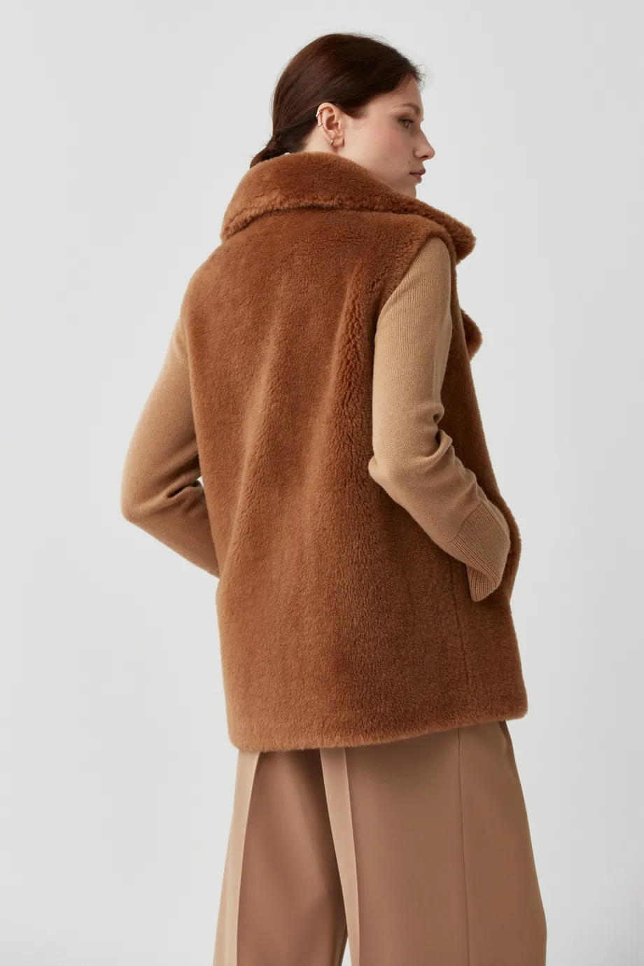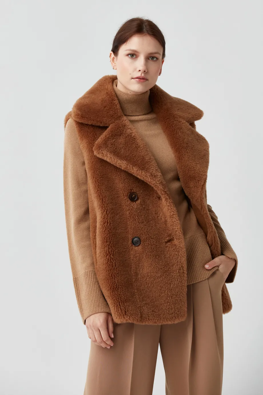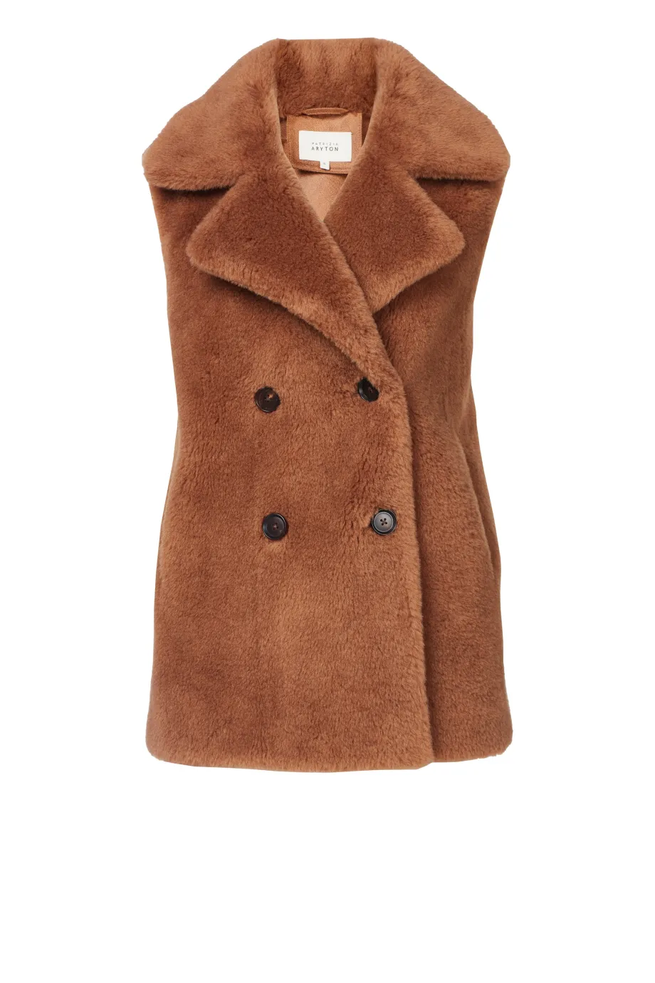 Dwurzędowa kamizelka teddy to kompromis pomiędzy grubym płaszczem zimowym a elegancką kurtką. Szykowny i ciepły, a przy tym nietuzinkowy i supermodny bezrękawnik stał się już hitem wśród fanek stylowych i praktycznych dodatków na chłodne dni. Puszysta kamizelka wełniana Patrizia Aryton w najszlachetniejszym odcieniu camel ożywi każdą Twoją stylizację!