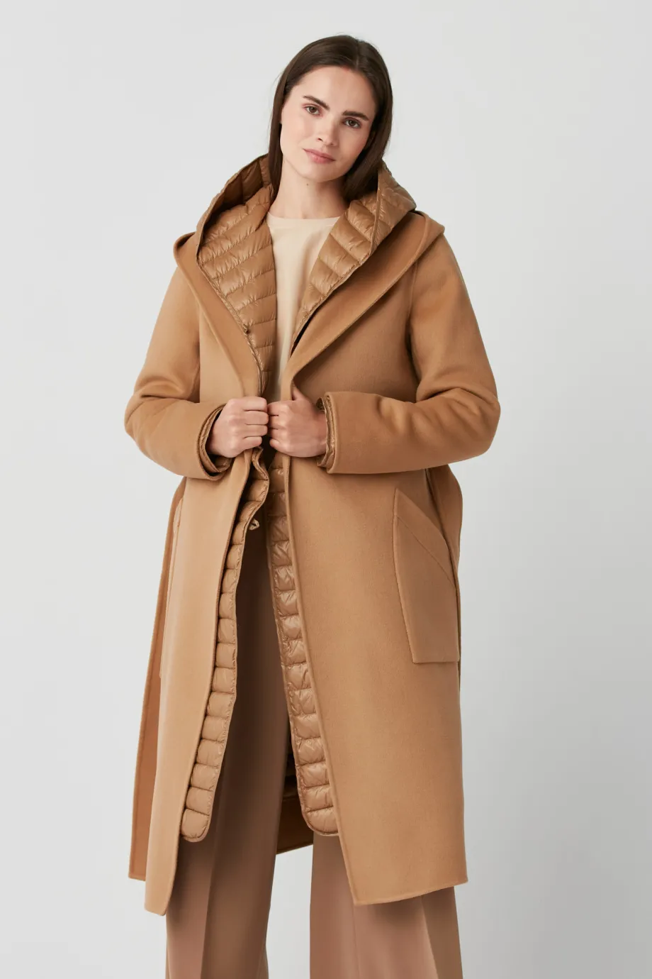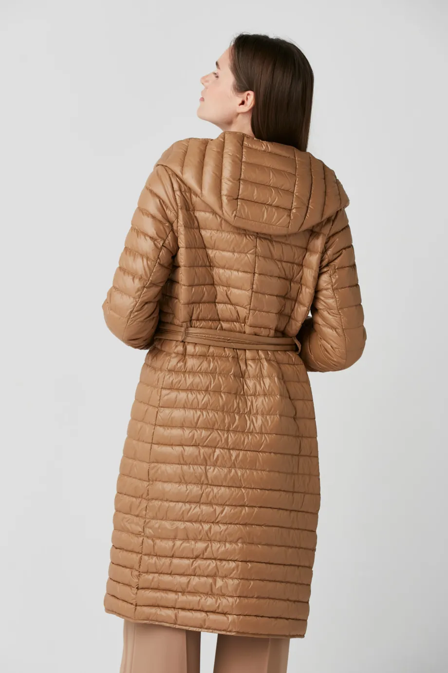 Lekka camelowa puchowa kurtka z kapturem Mila