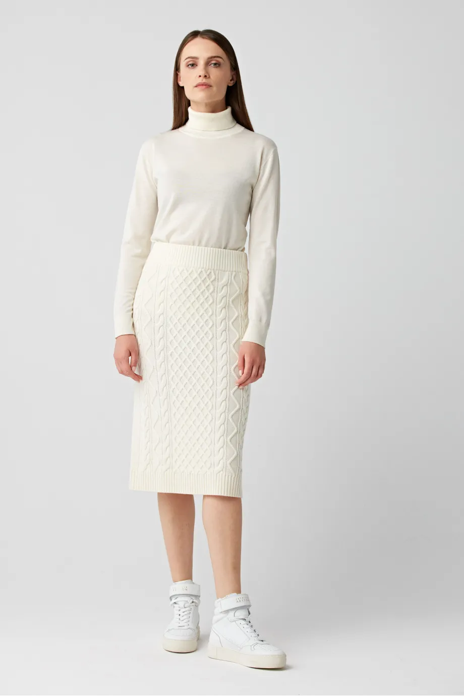 Biała spódnica z wełny merynosowej