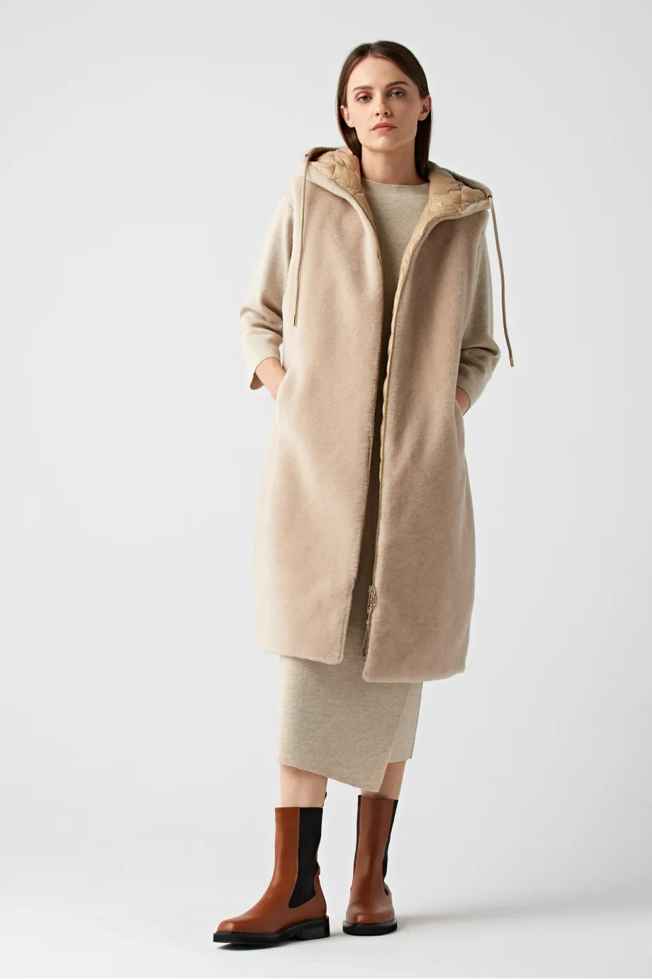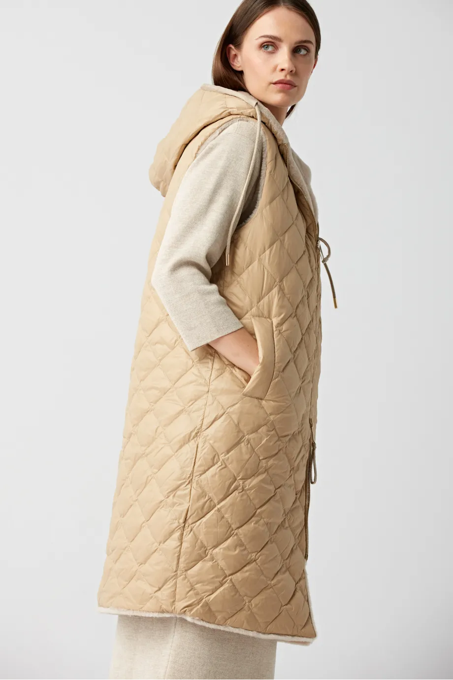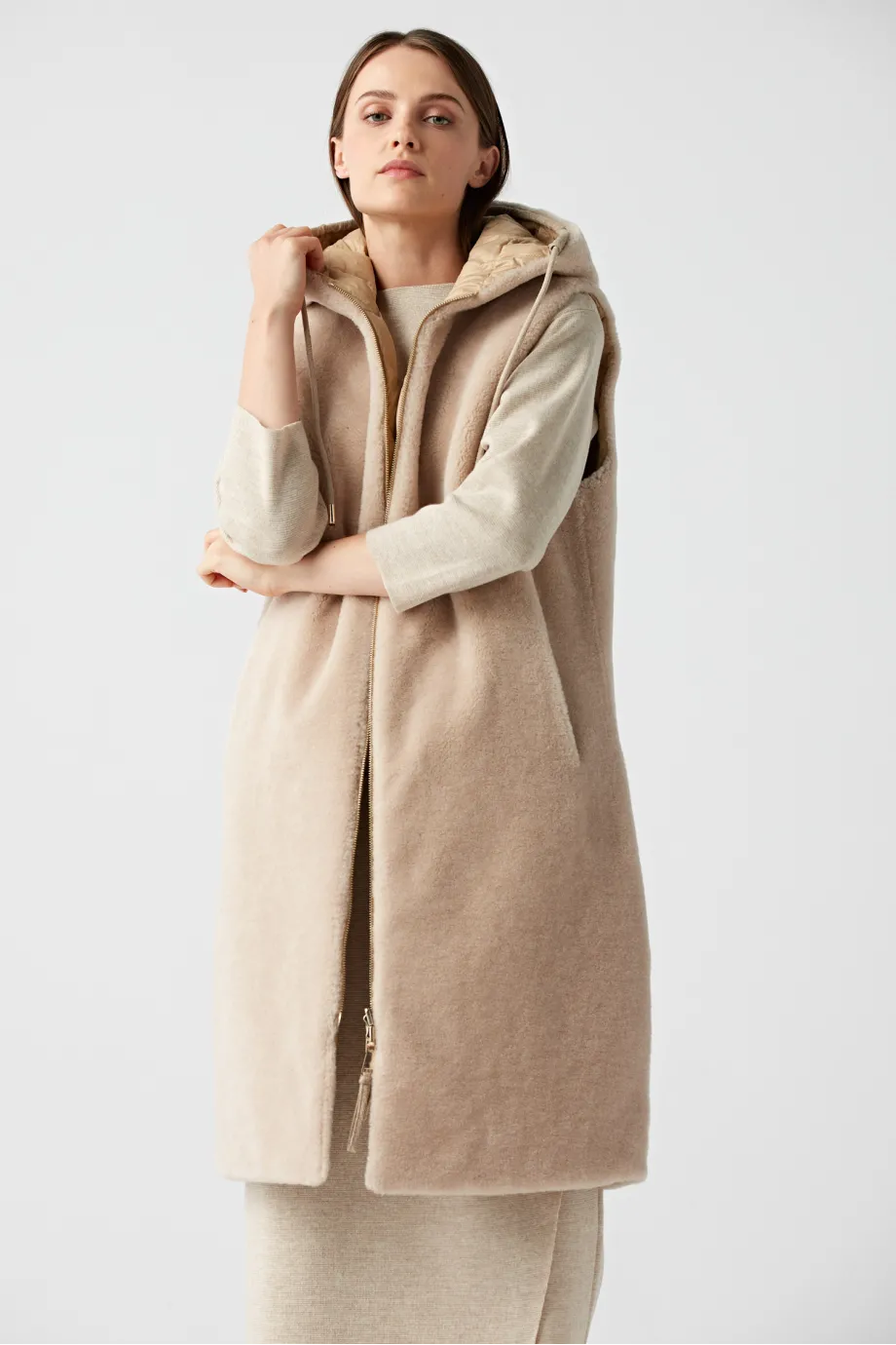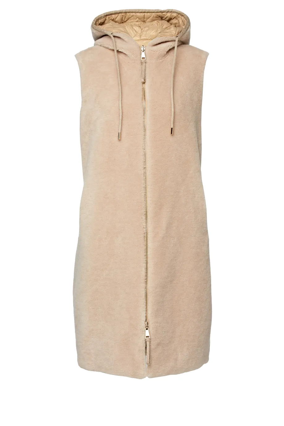 Dwustronna beżowa kamizelka z kapturem na zamek
