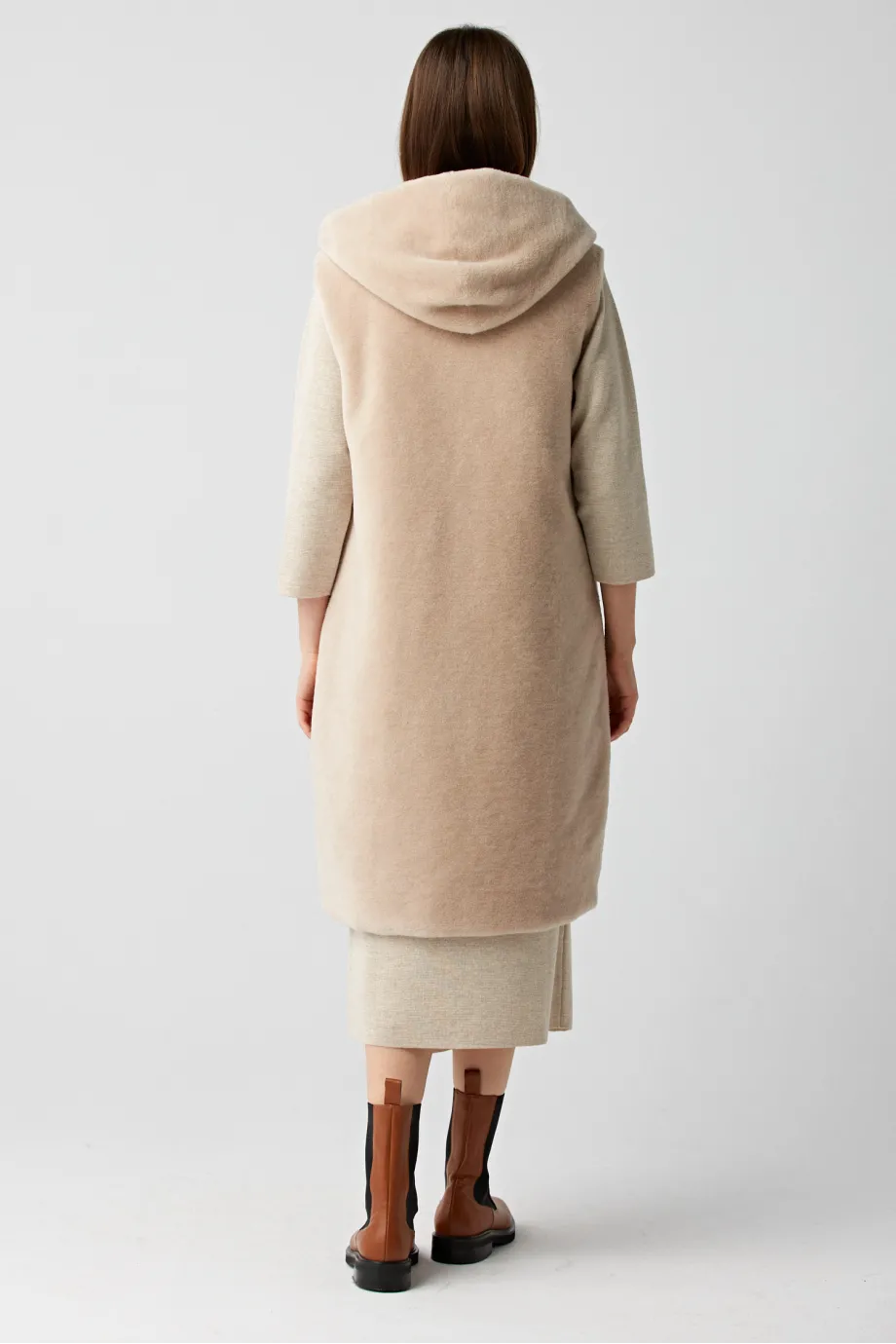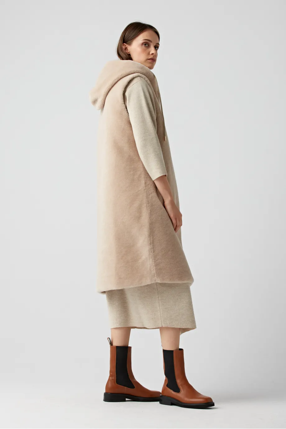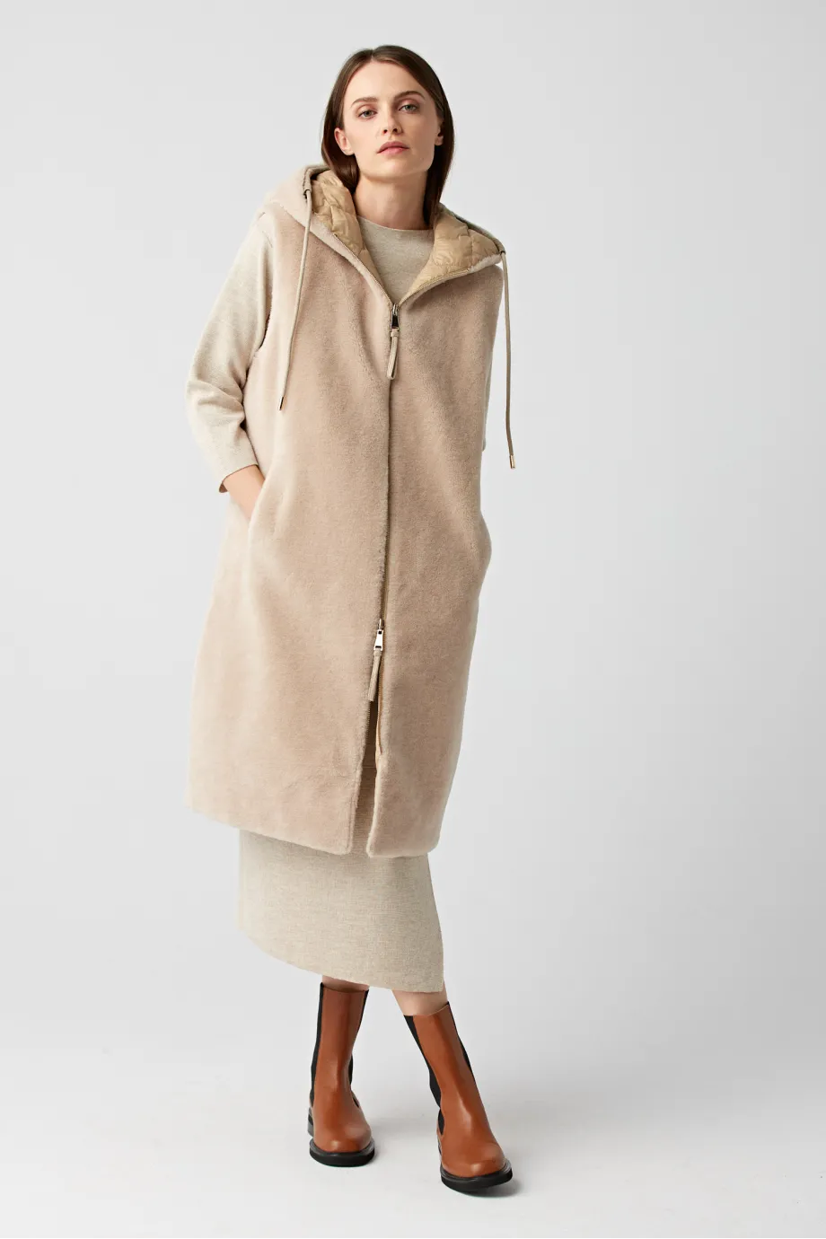 Dwustronna beżowa kamizelka z kapturem na zamek