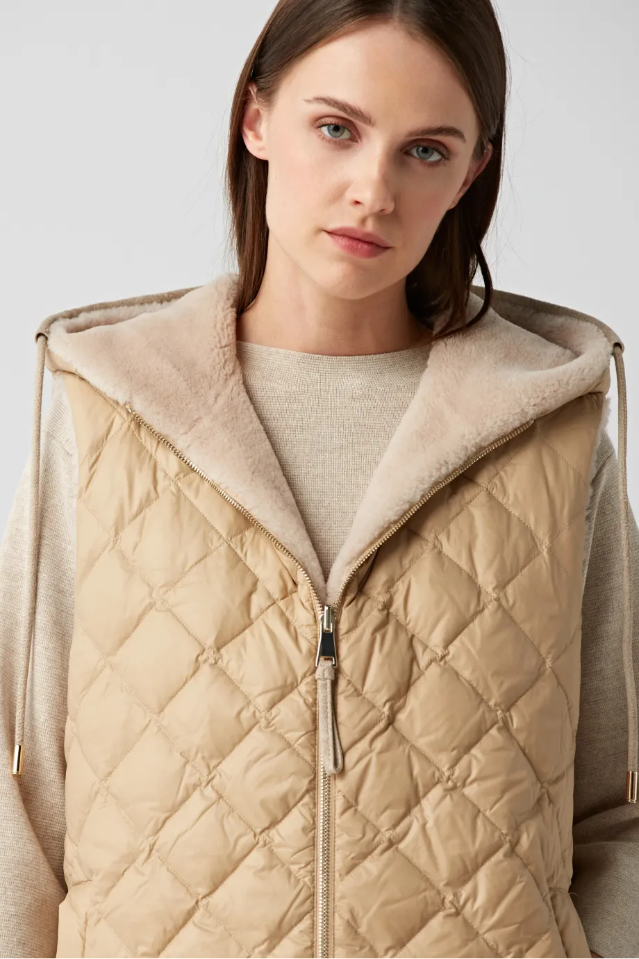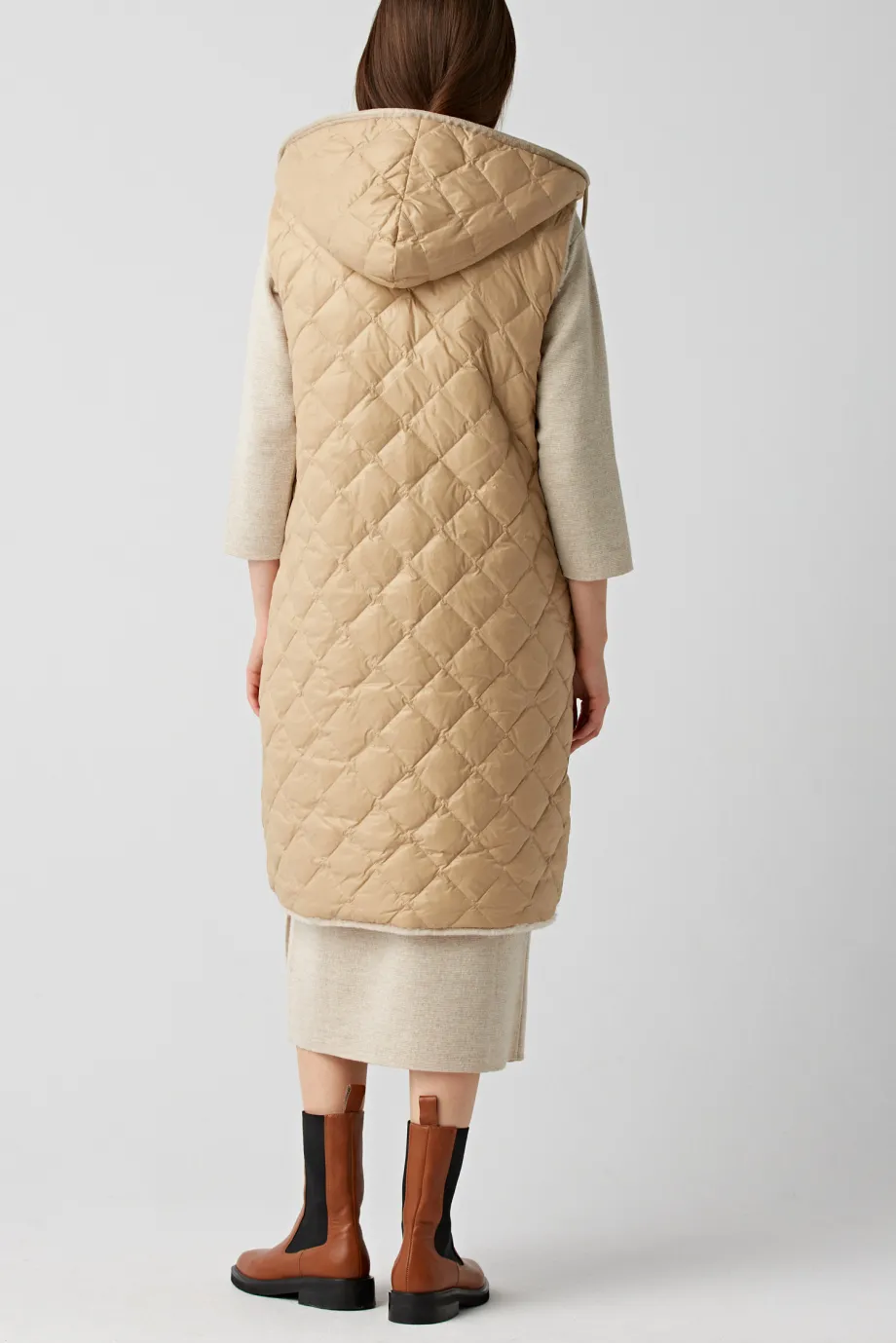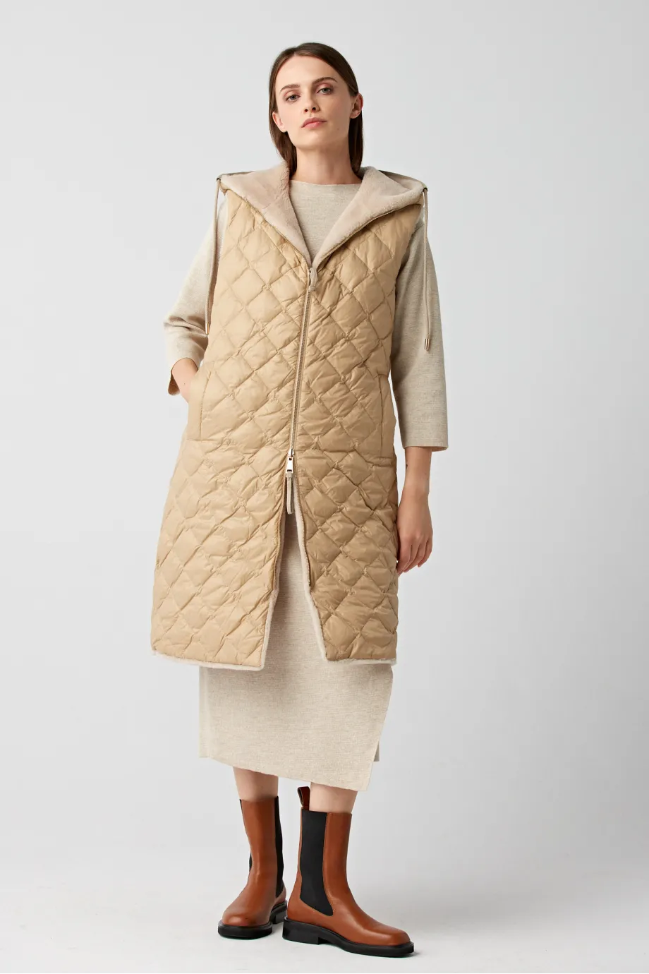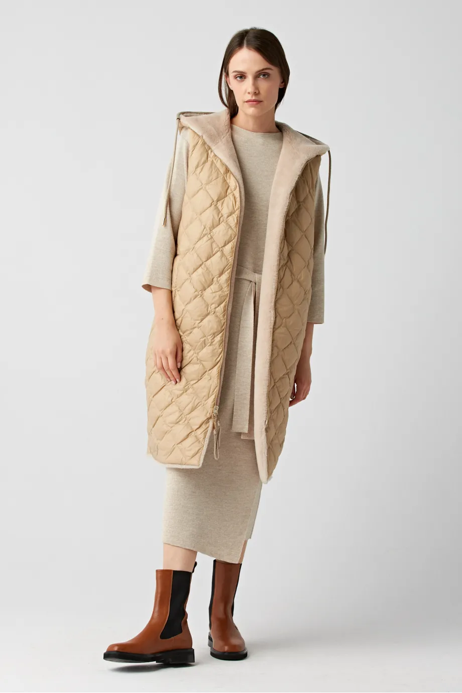 Dwustronna beżowa kamizelka z kapturem na zamek