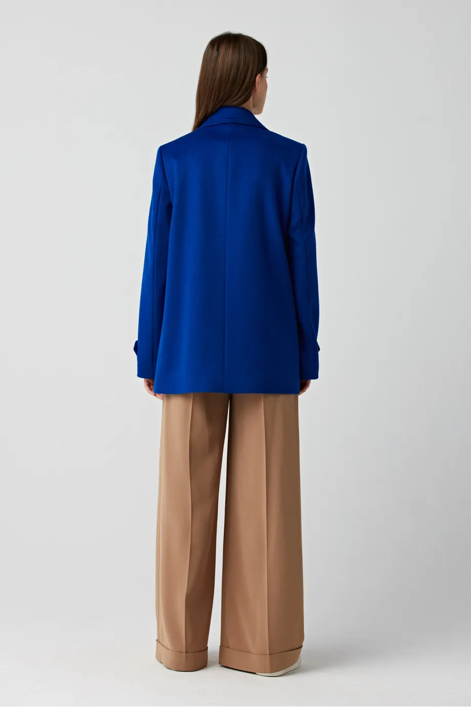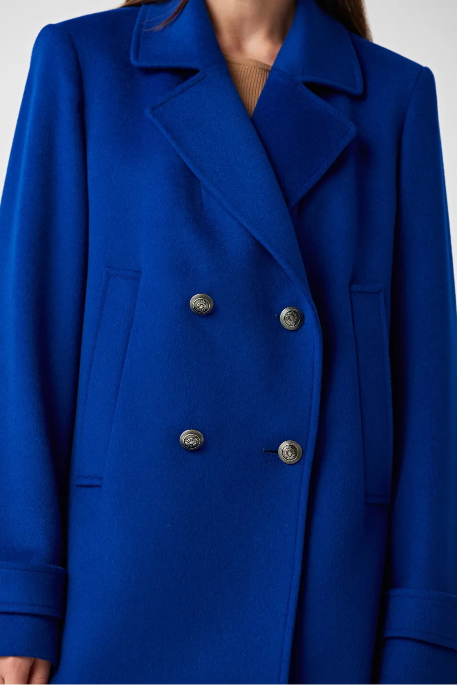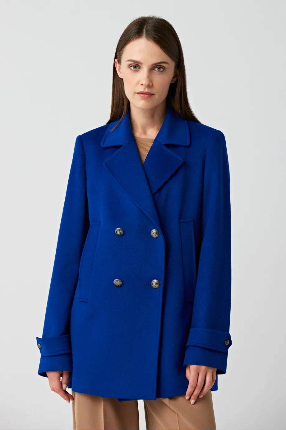 Wełniana kobaltowa kurtka dwurzędowa Clara