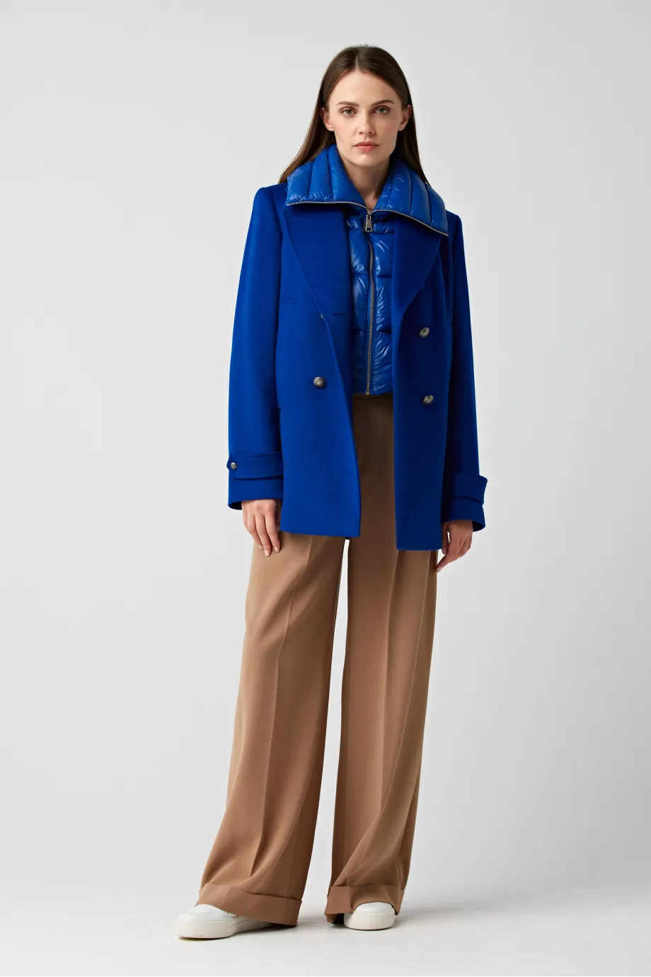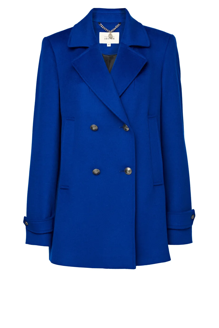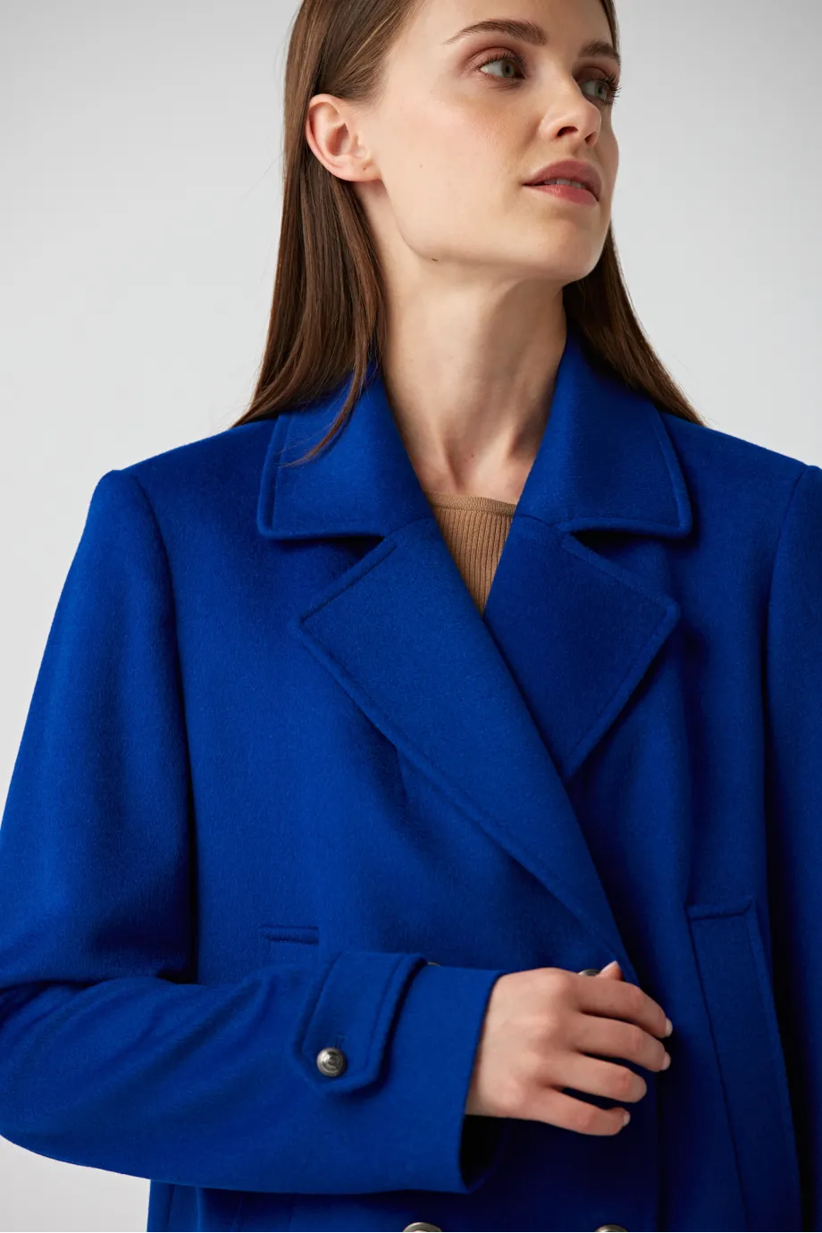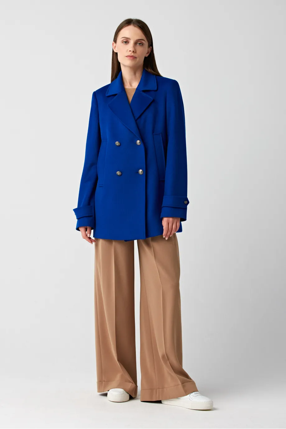 Wełniana kobaltowa kurtka dwurzędowa Clara