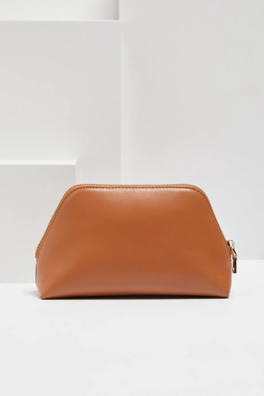 Złoty zamek błyskawiczny nadaje całości wykwintnego akcentu, a kształt trapezu z łagodnie zaokrąglonymi rogami sprawia, że saszetka jest zarówno poręczna, jak i harmonijna wizualnie. Kosmetyczka jest dostępna w dwóch wariantach kolorystycznych.