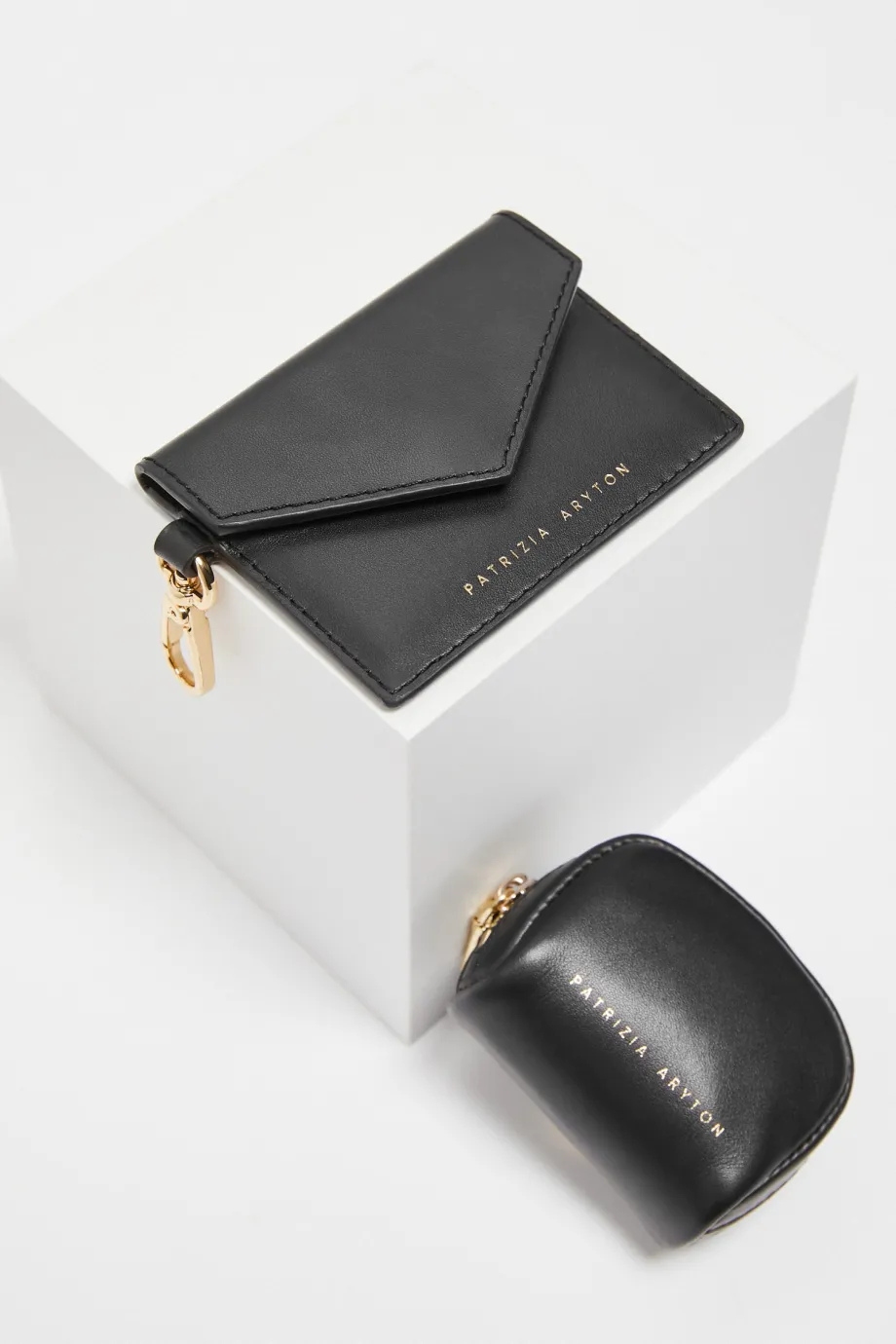 Skórzany mini set na kartę, dokumenty, słuchawki