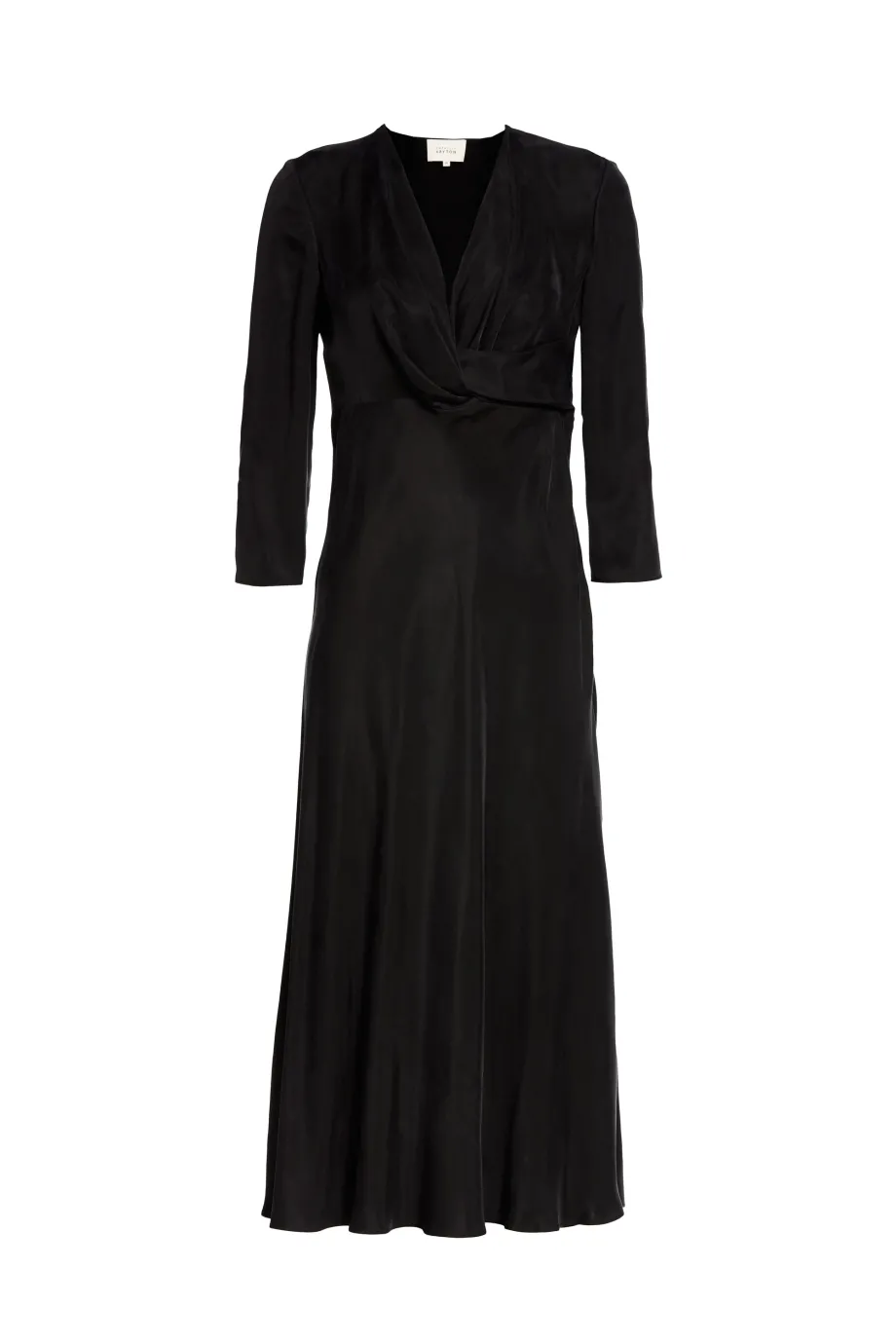 Czarna sukienka midi z rękawem 3/4 i dekoltem V