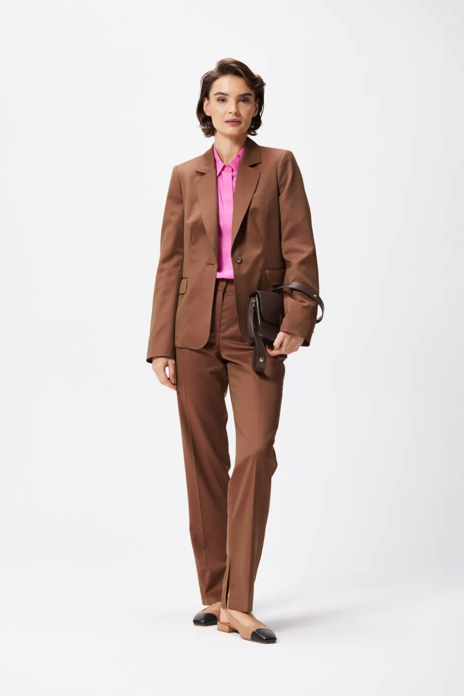 Luksusowe brązowe spodnie garniturowe Patrizia Aryton to jedna z najnowszych jakości w naszej ofercie. Szlachetność wełnianej tkaniny w połączeniu z ponadczasowością kroju i wyrafinowanym charakterem barwy tworzą harmonię stylu, komfortu i funkcjonalności. Jeśli wełniane spodnie Patrizia Aryton zestawisz z dedykowanym żakietem, powstanie ekskluzywny set biznesowo-wieczorowy. Sprawdź, dlaczego jeszcze warto je przymierzyć!