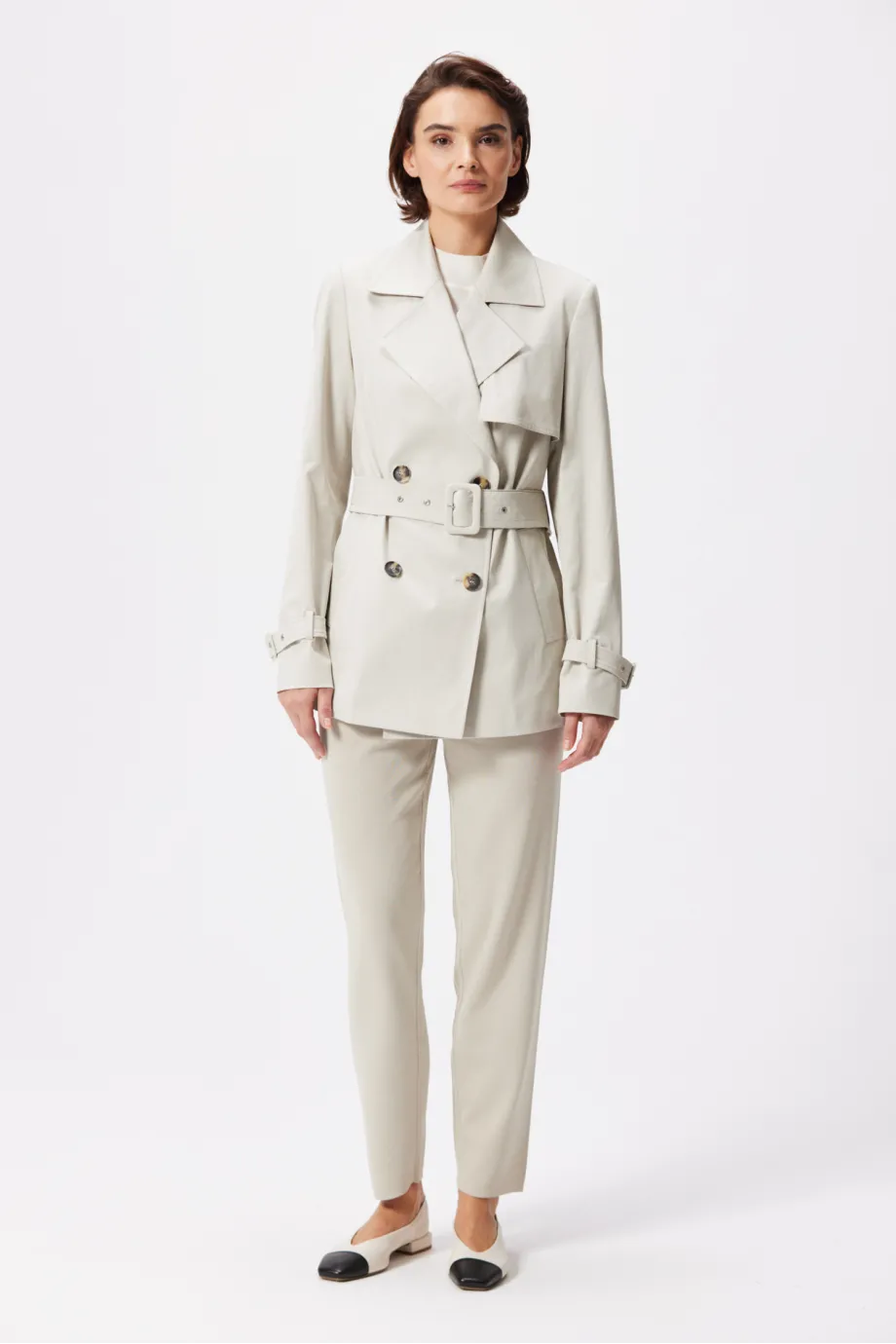 - Krótki trencz z paskiem