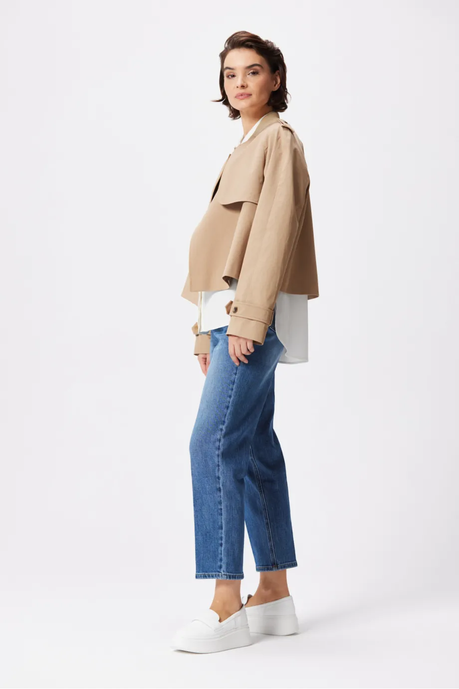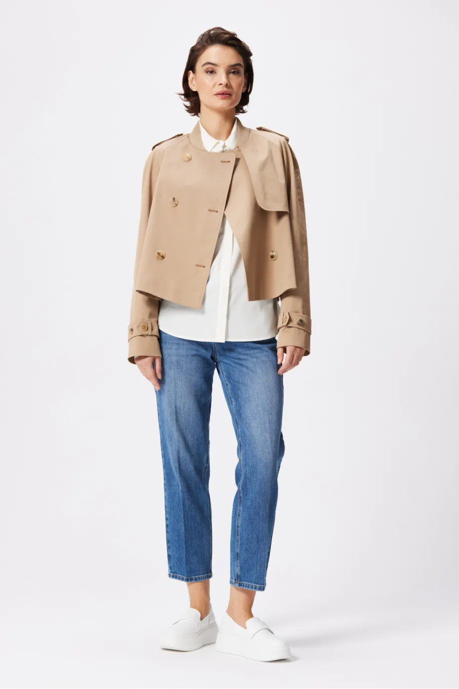 Camelowy trencz bawełniany już na stałe zagościł w naszych szafach. A co powiesz na jego krótszą wersję? Ten model kurtki Patrizia Aryton z linii Office Style łączy w sobie zalety kilku rodzajów okryć. Poznaj mistrzowską synergię trzech elementów: formy charakterystycznej dla krótkiej kurtki, elegancji typowej dla marynarki oraz ulubionej tkaniny, którą już znasz z kultowych wiosenno-jesiennych płaszczy!