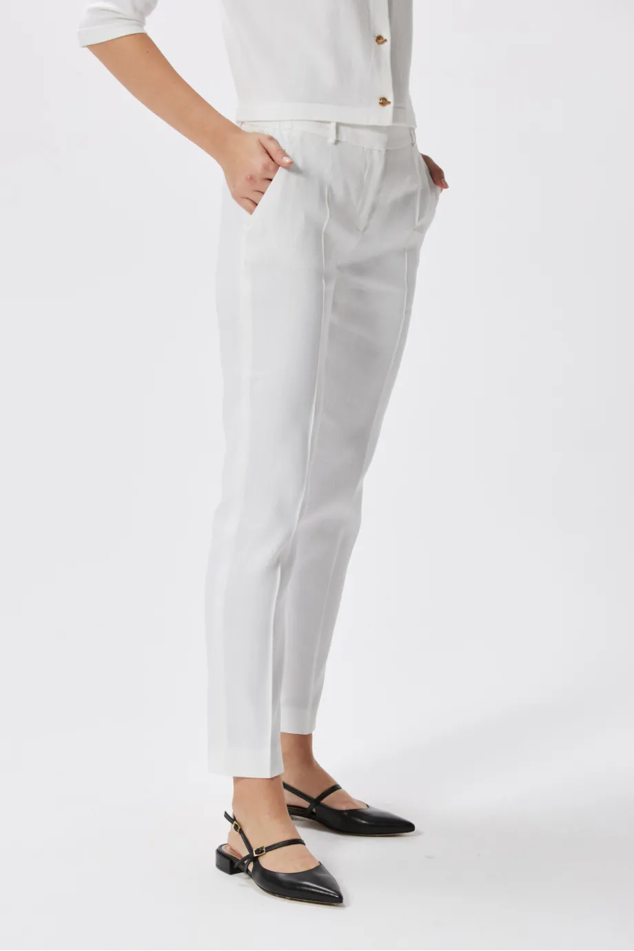 Spodnie Lotto damskie w kolekcjach Patrizia Aryton co sezon pojawiają się w nowych odsłonach. Wasz ulubiony fason wygodnych cygaretek tym razem zyskuje kolor mlecznej bieli, a materiał, z którego je uszyto, to miękki i oddychający len. Jeśli Twoim celem zakupowym są eleganckie spodnie lniane damskie, koniecznie przymierz ten model i dobierz do niego dedykowany żakiet z naszej oferty!
