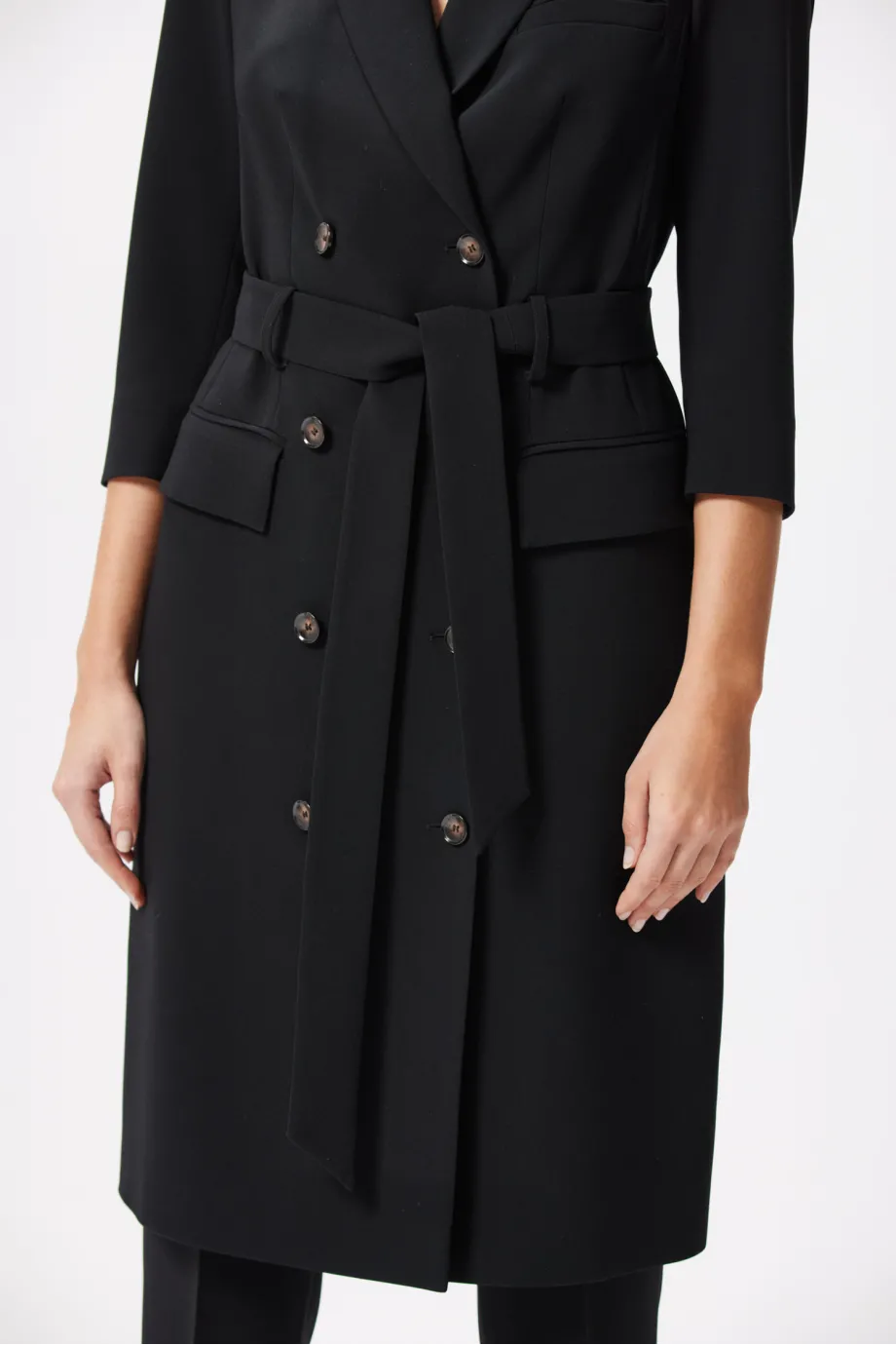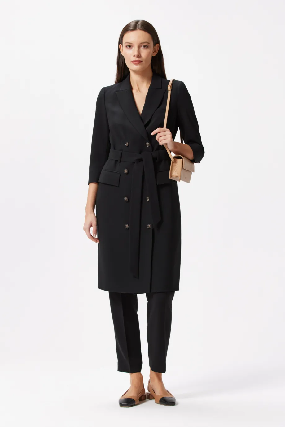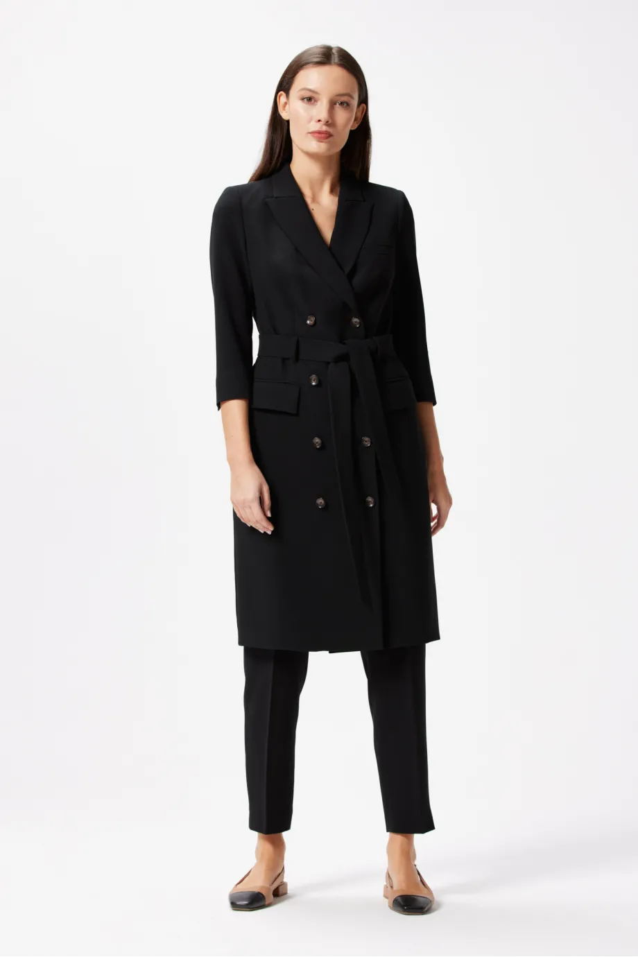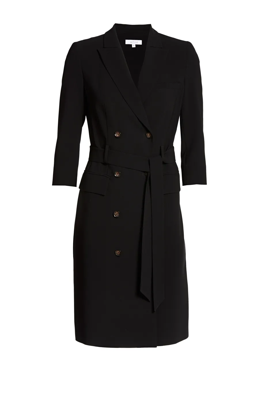 Sukienka dwurzędowa z paskiem ma taliowany fason i długość do kolan. Rękawy ¾ wykończono delikatnym rozcięciem i wyrazistymi guzikami, które są jednym z wiodących motywów najnowszej kolekcji.