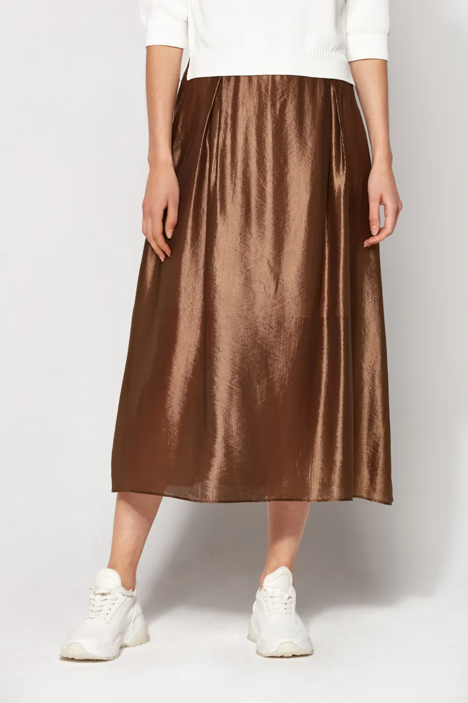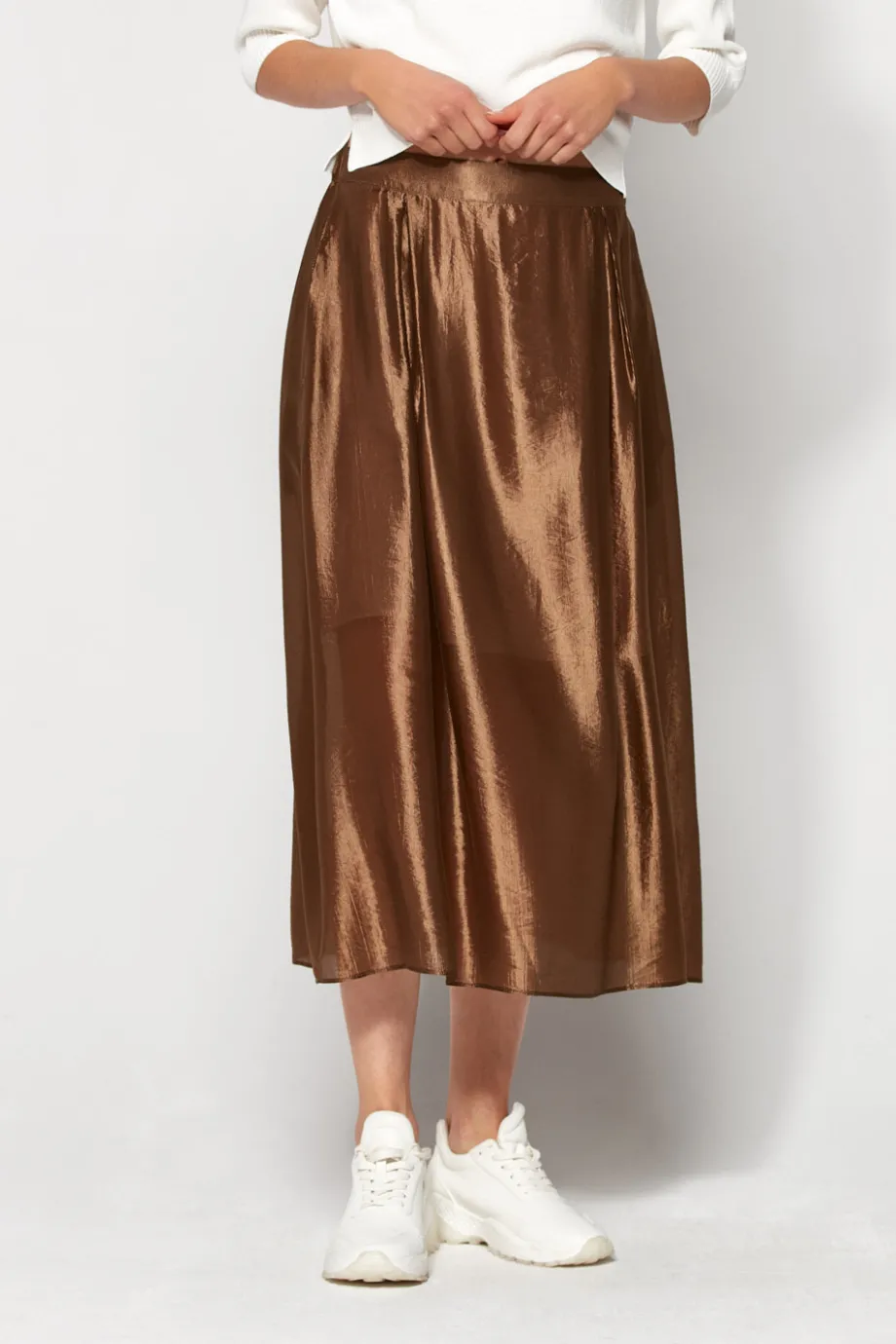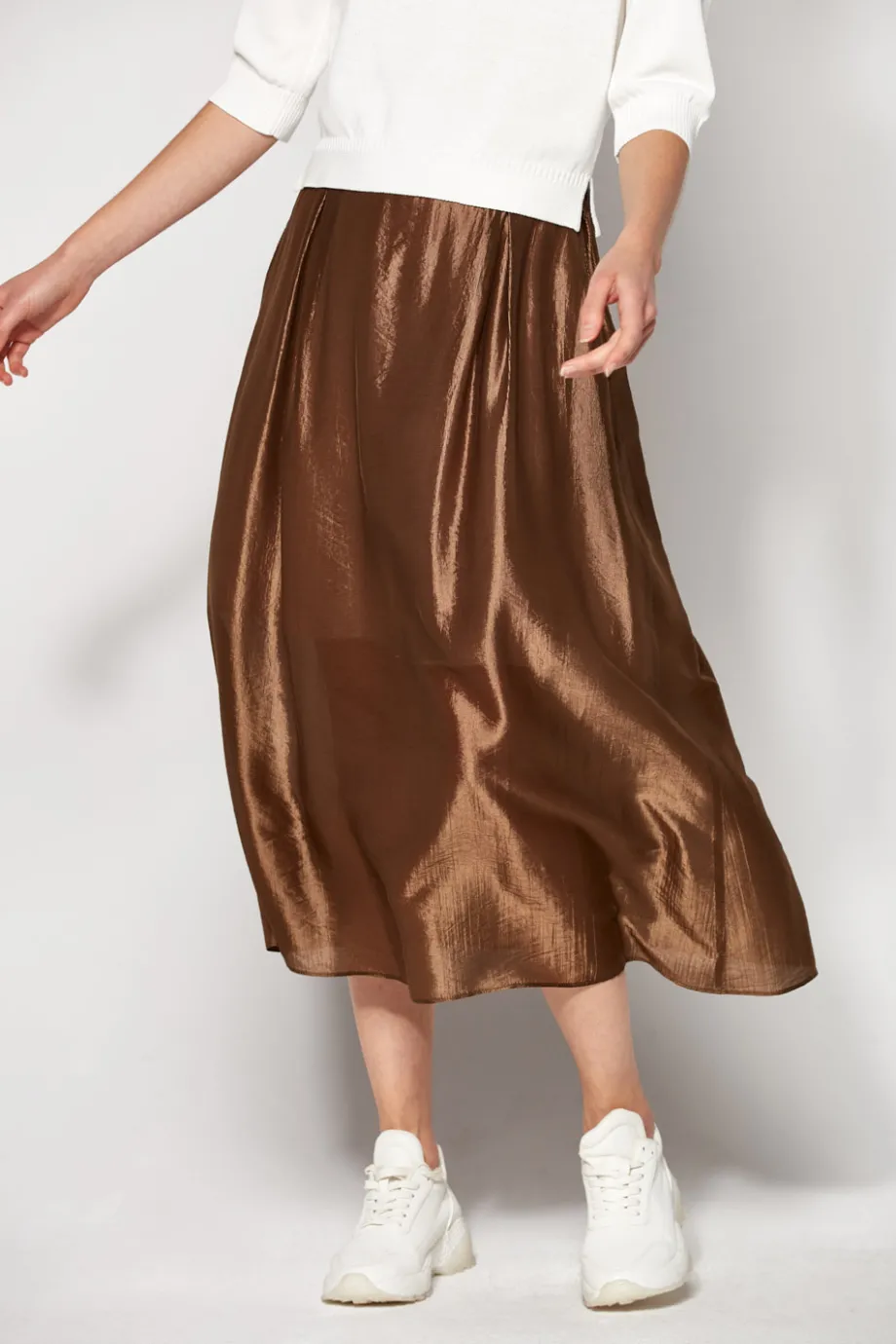 - Błyszcząca spódnica w kolorze khaki