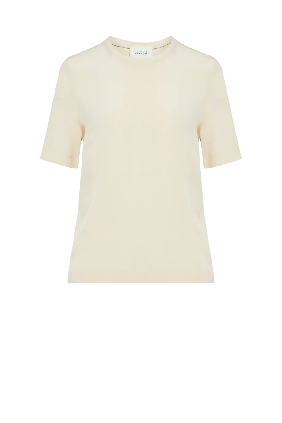 Beżowa bluzka z okrągłym dekoltem i krótkim rękawem