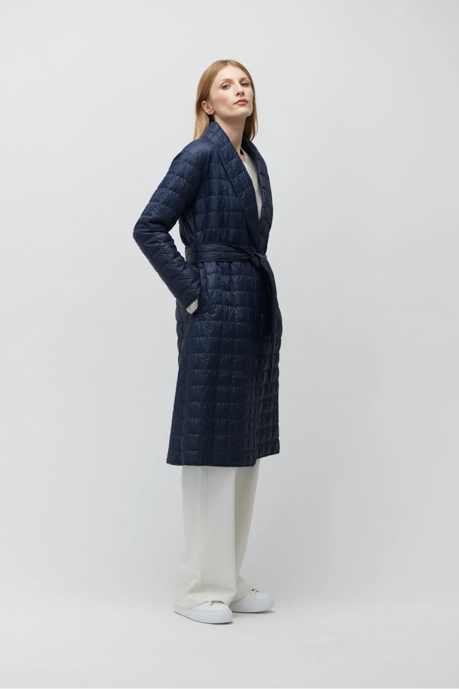 Kurtka z szalowym kołnierzem Patrizia Aryton nie posiada zapięcia - jest przewiązywana w talii paskiem. To potęguje efekt lekkości i pomaga zaakcentować wcięcie w pasie. Długość za kolano jest optymalna, kiedy potrzebujesz mieć swobodę ruchów, ale jednocześnie zabezpieczyć ciało przed chłodem. Kurtka midi pasuje też do naszych bestsellerowych płaszczy doubleface, dla których może stanowić docieplenie na czas mrozów.