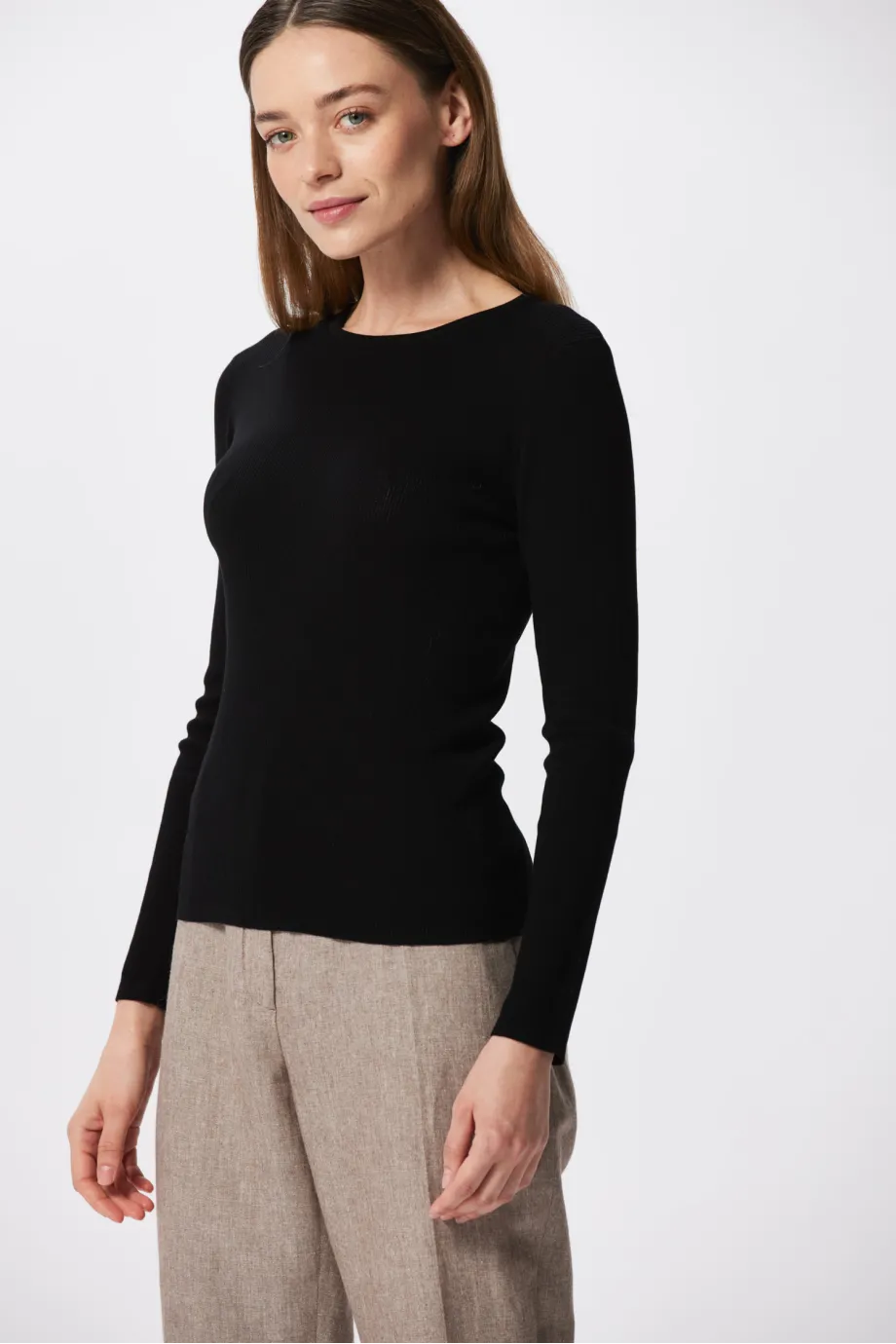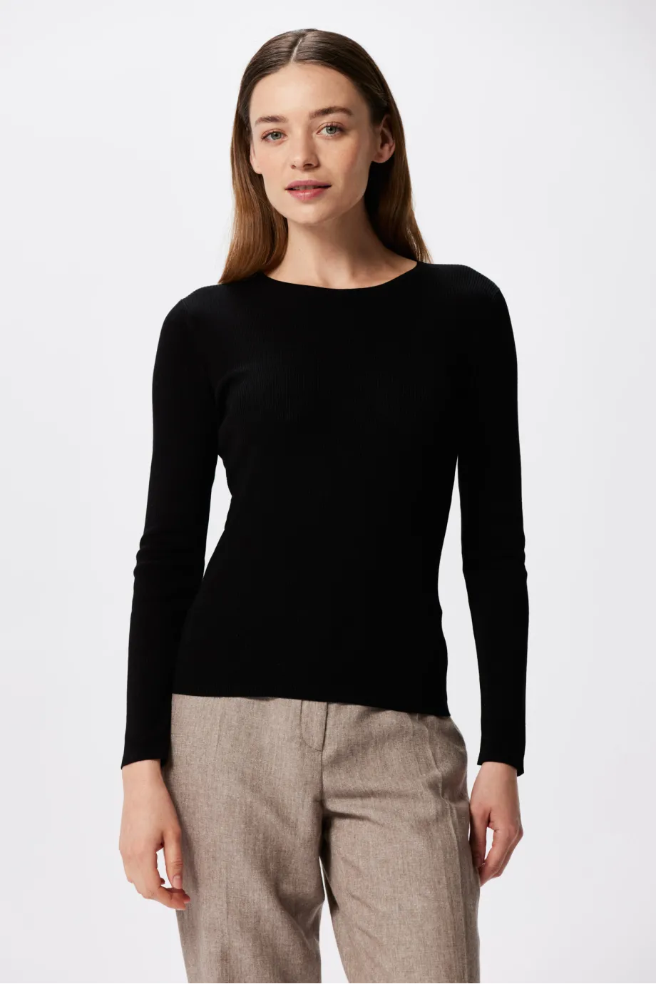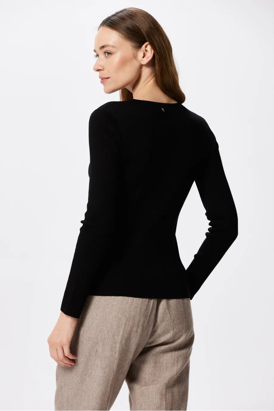 Czarna bluzka dzianinowa dostępna jest w dwóch wersjach kolorystycznych - głębokiej czerni oraz cieplejszym odcieniu camelowym. Czerń świetnie komponuje się z każdym odcieniem bazowym, ale też wygląda kapitalnie w mniej oczywistych zestawieniach z topowymi barwami sezonu, np. ceglanym, nude, amarantem, limonką czy zgaszonym brązem.
