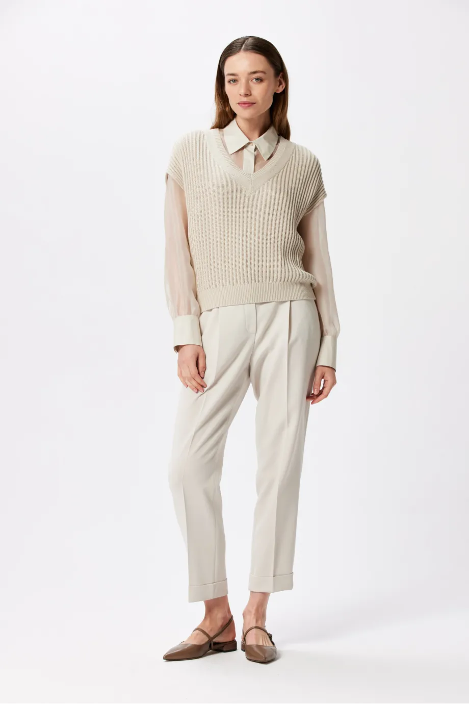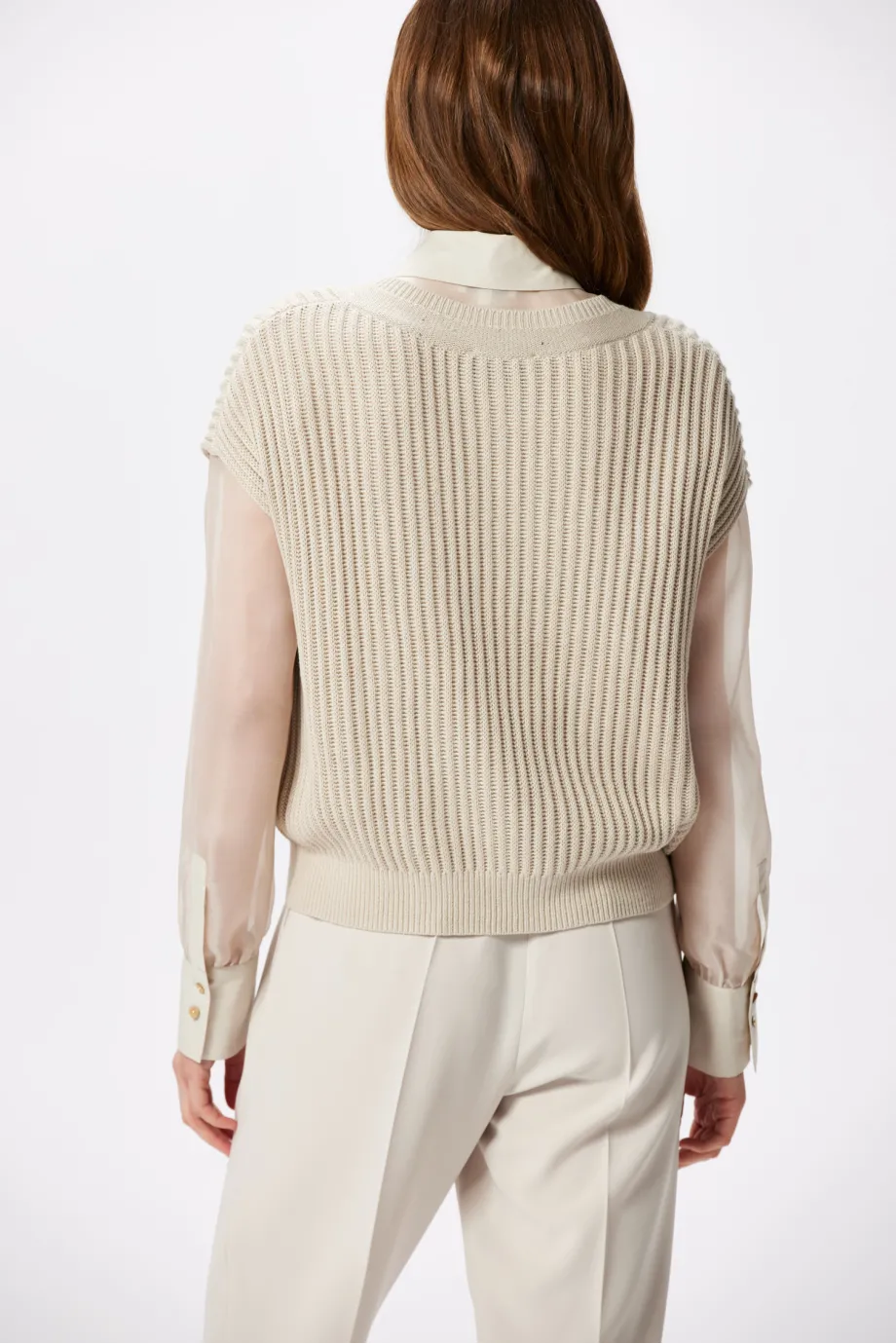 Na tę jesień i zimę przygotowaliśmy dla Was coś specjalnego - kapsułę Atelier, w której królują łagodne odcienie z delikatnymi kontrastami. Ta kolekcja wyraża podziw dla kunsztownego krawiectwa, doskonałości szlachetnych surowców oraz wybitnego zmysłu estetyki i umiejętności odpowiadania na potrzeby współczesnych kobiet, jakie reprezentują najznakomitsi projektanci. Jego wyrazem jest m.in. dzianinowa bluzka z krótkim rękawem, która może być fantastycznym uzupełnieniem codziennej garderoby o wyrazisty, choć wciąż nawiązujący do klasyki akcent, inspirowany ręcznymi plecionkami. Odkryj wszystkie jej zalety!