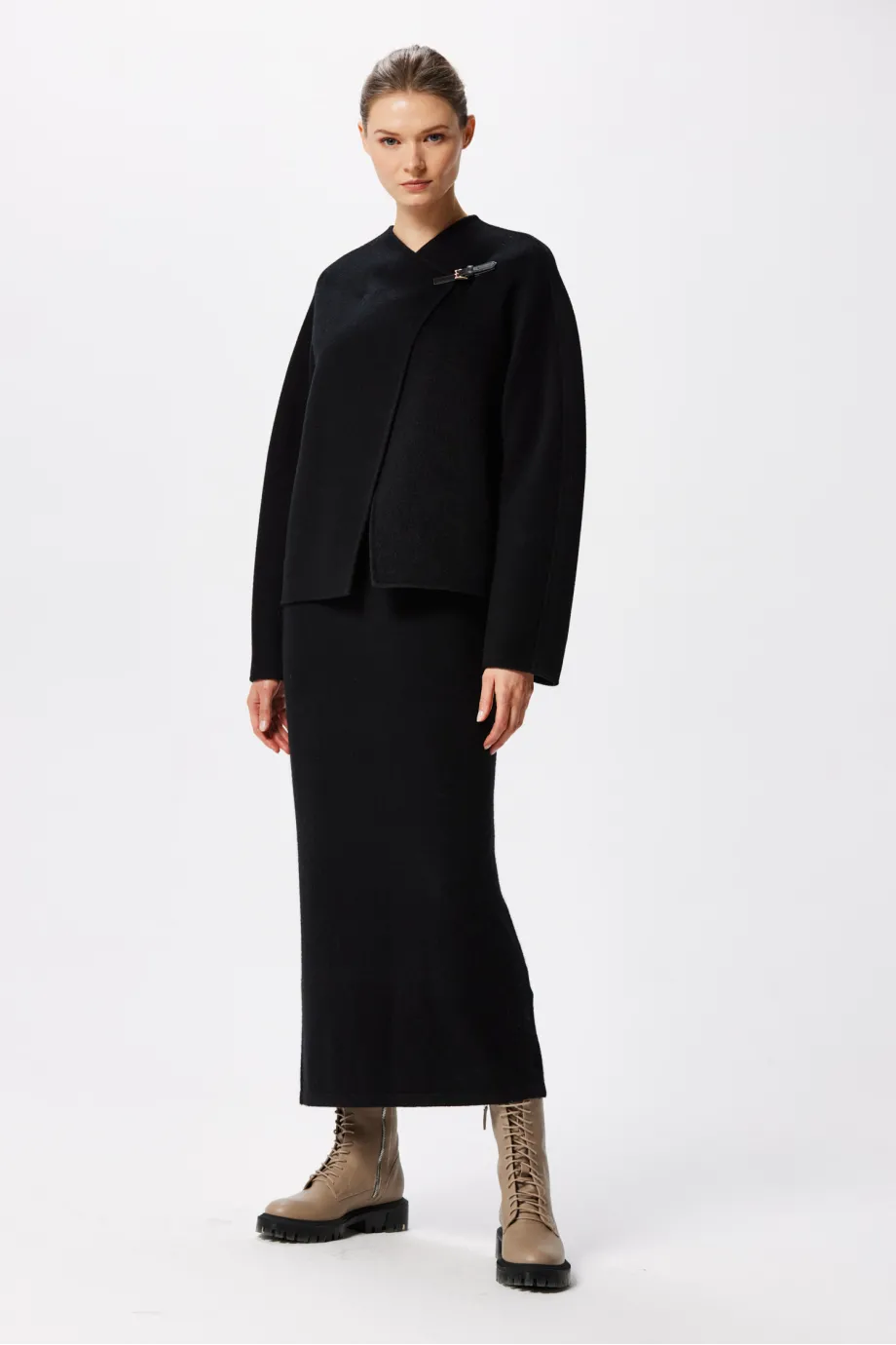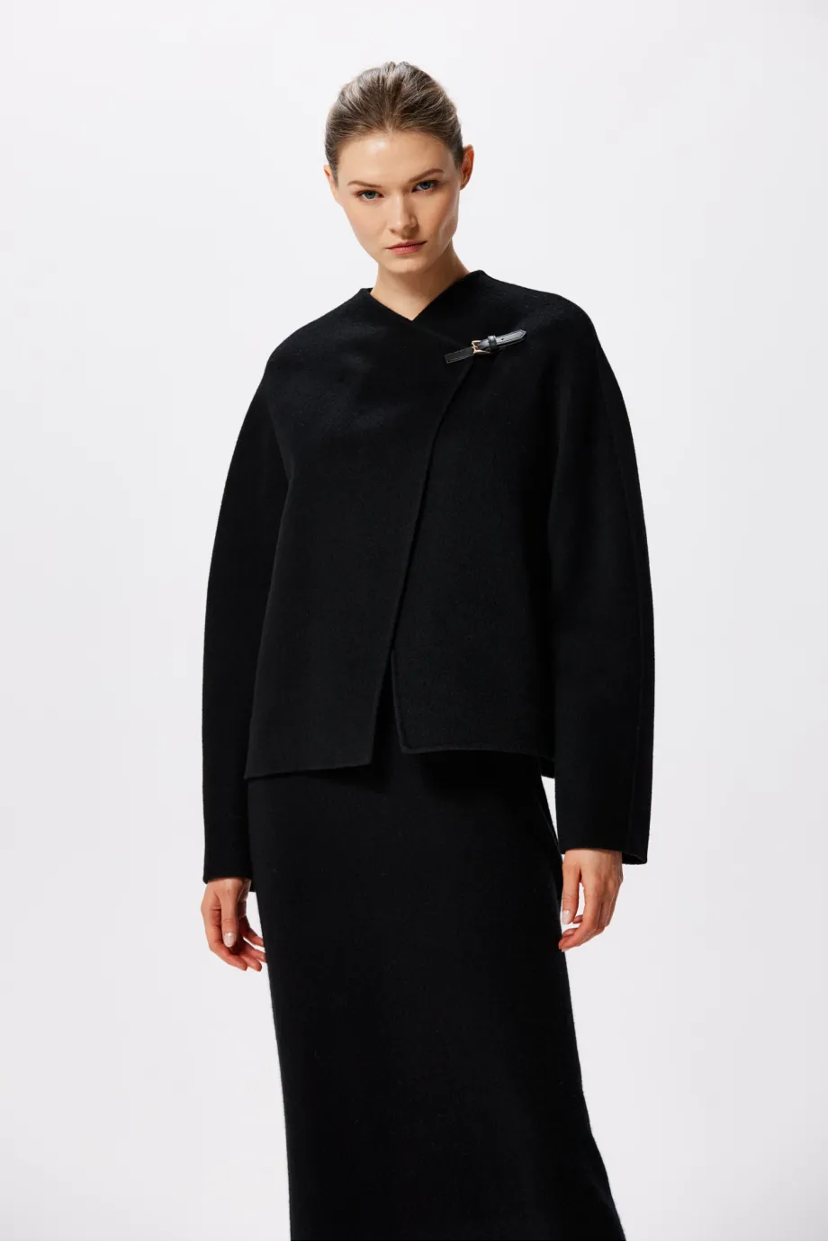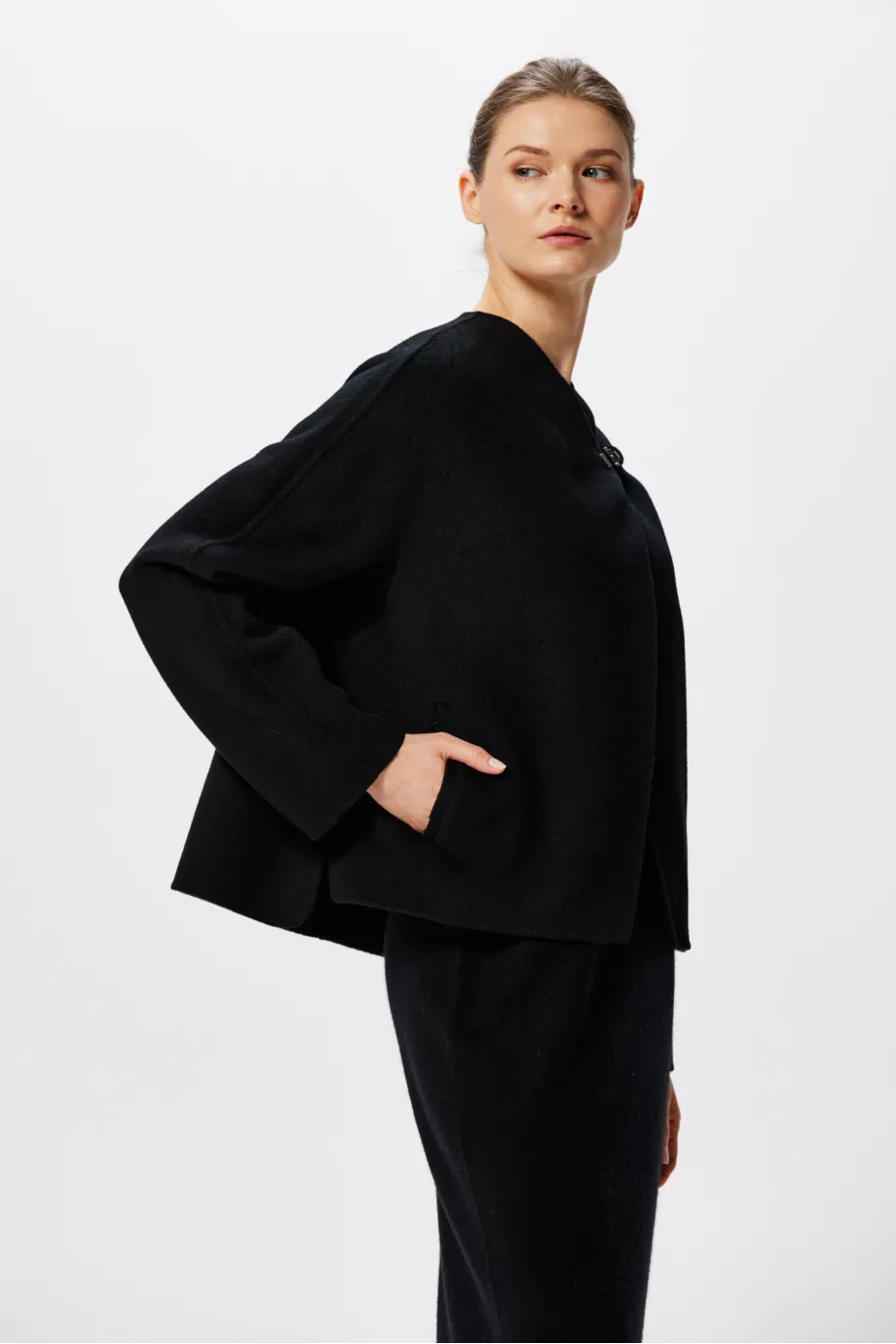 Czarna krótka kurtka z wełny doubleface
