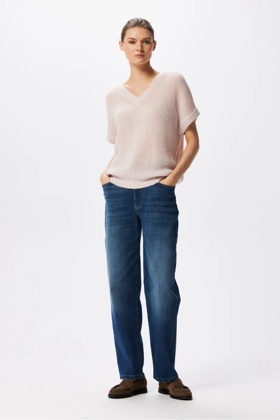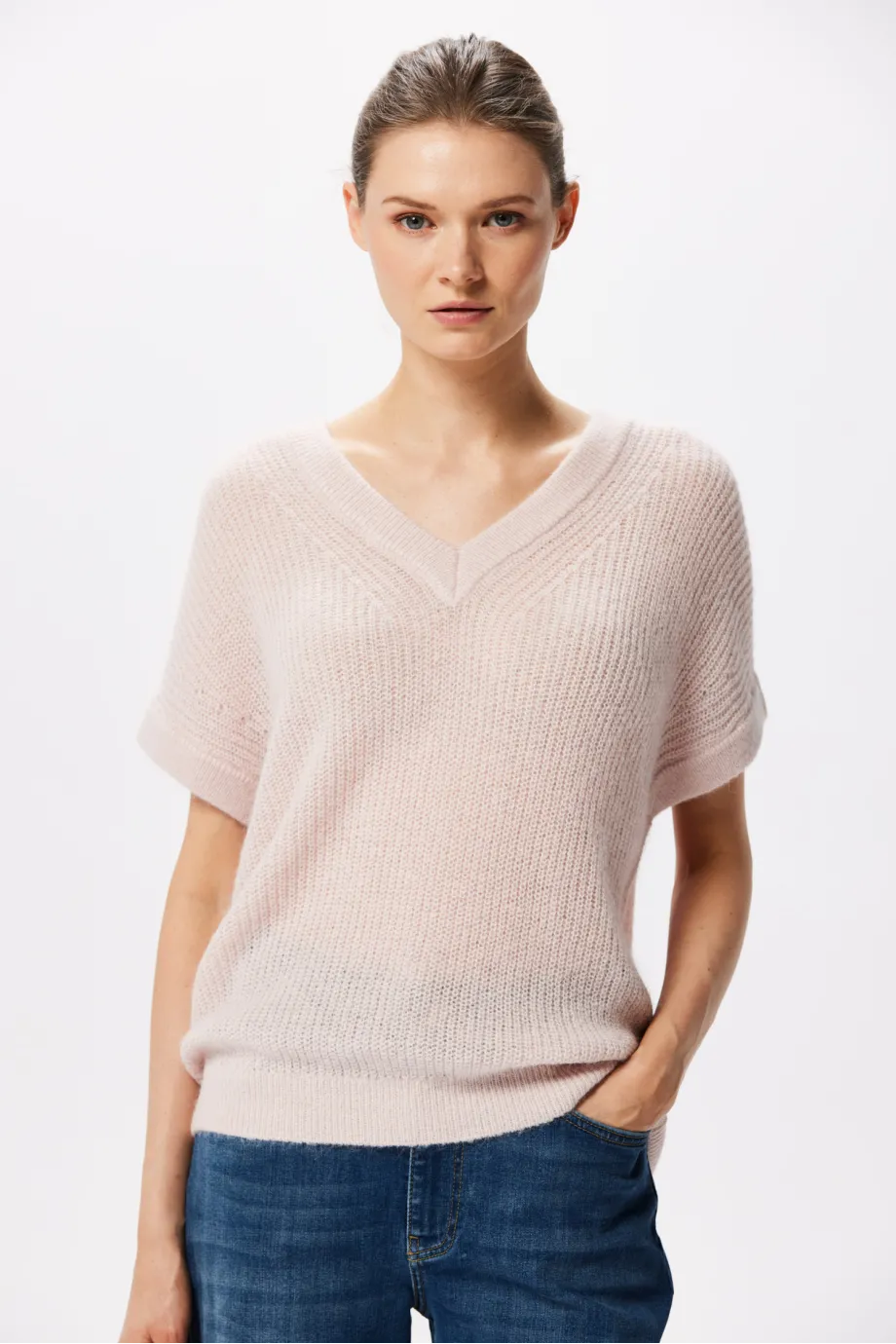 Sensualność, łagodne otulenie, szlachetność surowców i delikatność koloru - tymi słowami można opisać naszą nowość, którą jest jasnoróżowa bluzka z dekoltem w serek. Model reprezentuje ubrania całoroczne, które możesz stylizować na wiele sposobów i traktować jako bazę lub uzupełnienie ulubionego looku. Elegancka bluzka z krótkim rękawem Patrizia Aryton fantastycznie wpisuje się w aktualne trendy, pozostając jednocześnie w harmonii z ponadczasową klasyką.