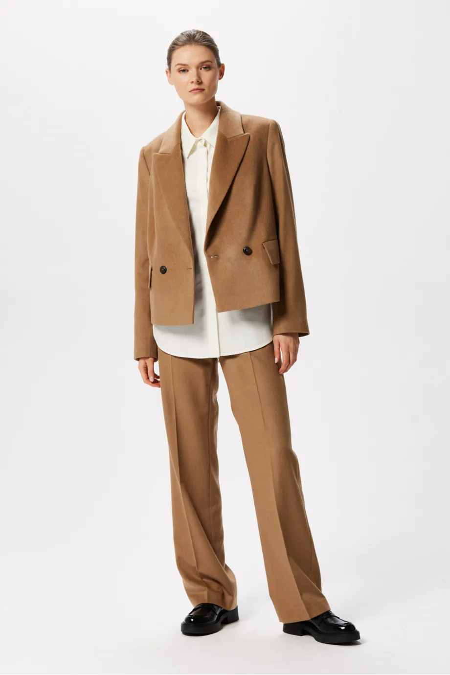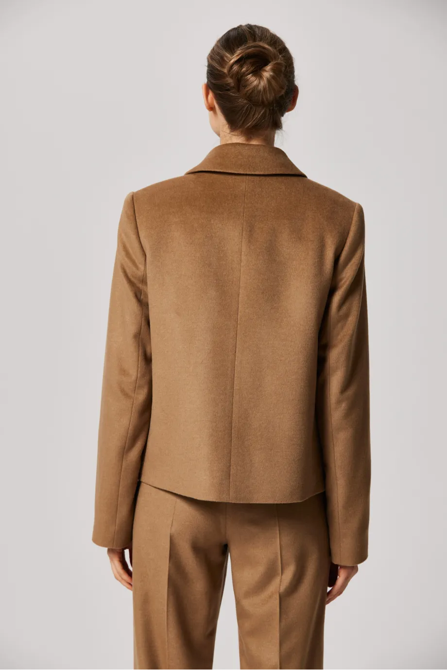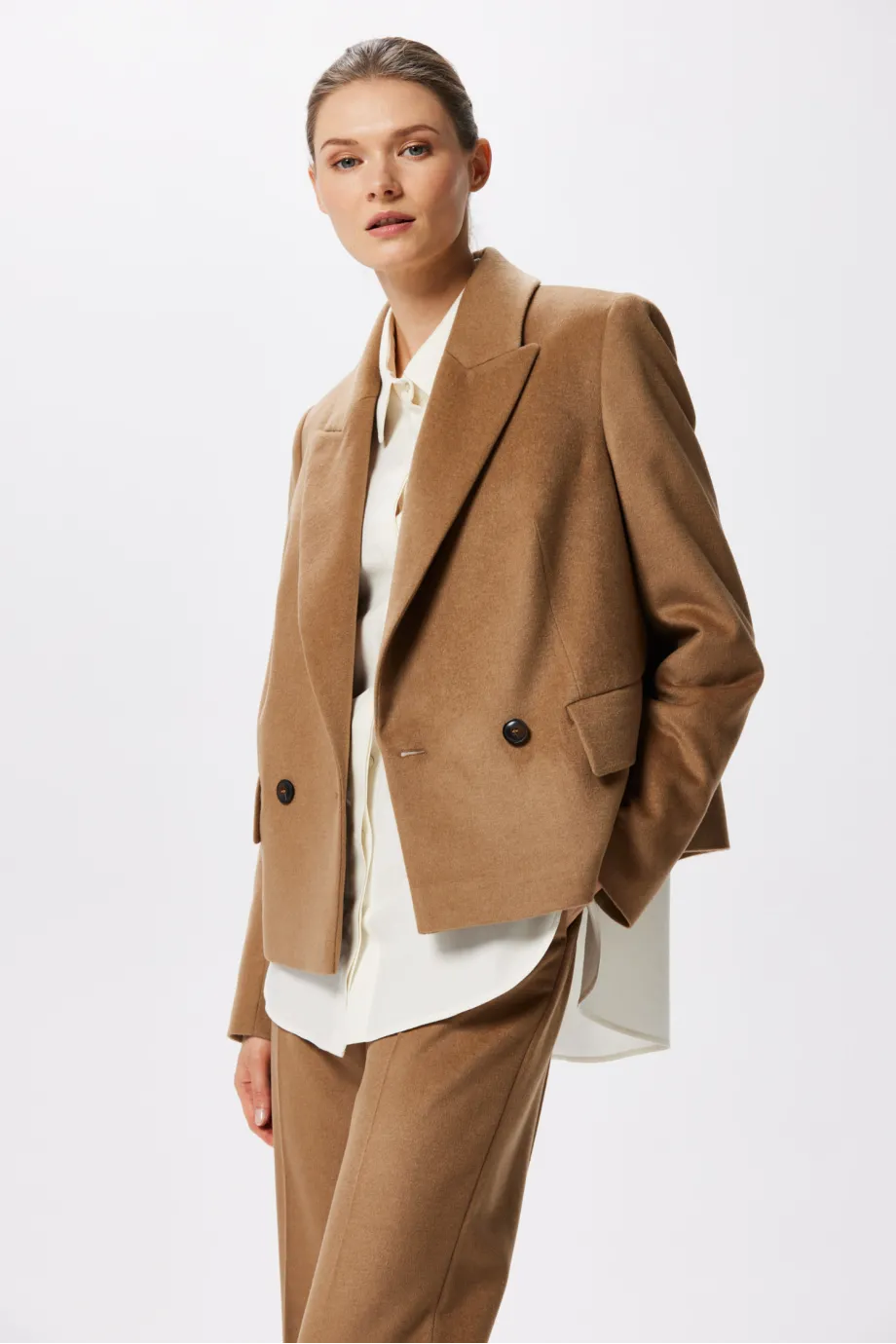 Nasza kurtka dwurzędowa o pudełkowym fasonie przypomina krótki żakiet - idealny, gdy potrzebujesz lekkiego i zarazem wyrazistego okrycia wierzchniego. W chłodne dni w biurze może służyć za górę do garniturowych spodni. Ubranie osadzono na podszewce, a dodatkowa warstwa kaszmiru dodaje miękkości i ciepła, nie zaburzając lekkiej formy.