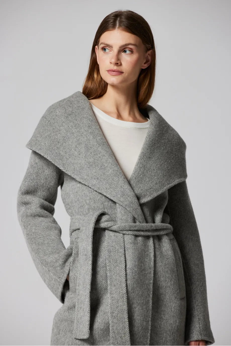 Okrycia z wełny doubleface to produkty, z których słynie nasza marka od wielu lat. Trudno o lepszą jakość, staranność wykończenia i unikatowość detali. Tym razem stworzyliśmy dla Ciebie długi szary płaszcz z paskiem, który otuli Cię miękkością i zwieńczy najbardziej wytworne jesienno-zimowe stylizacje. Odkryj wełniany płaszcz w jodełkę w plastycznym kolorze i zachwyć się jego ponadczasowym szykiem.