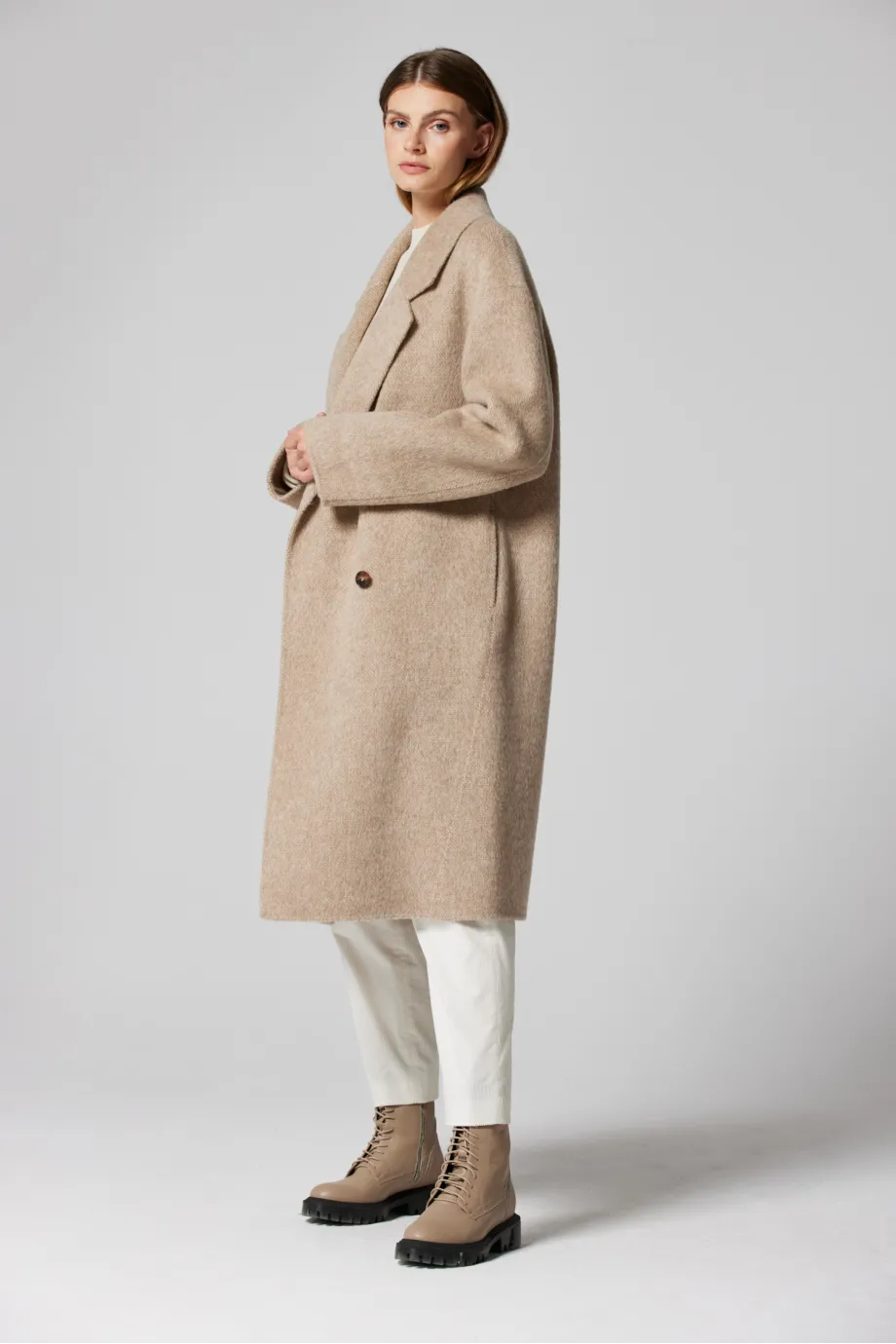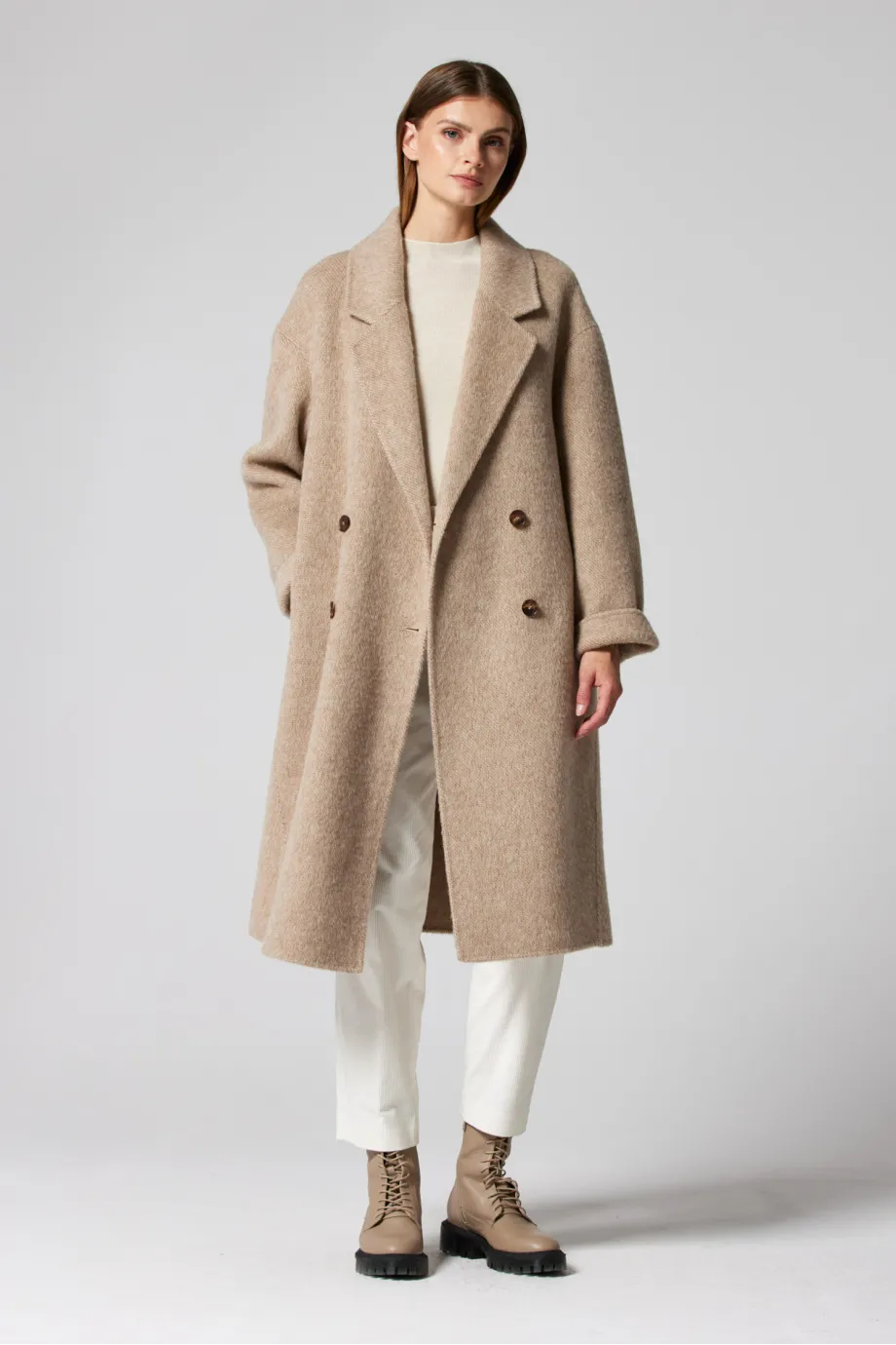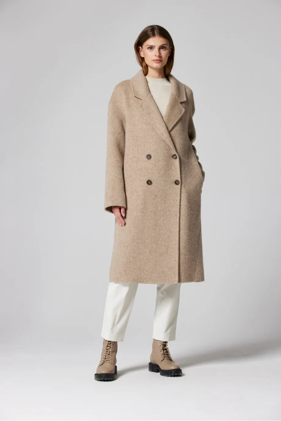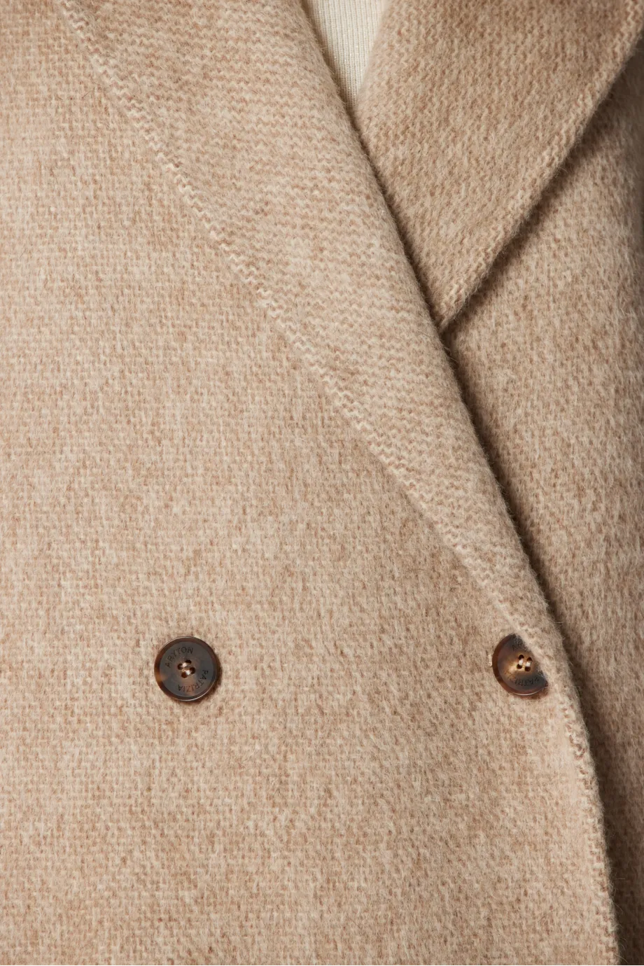 Damski dwurzędowy płaszcz z wełną z alpaki