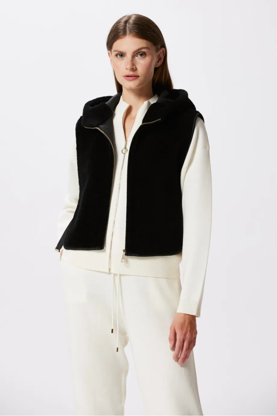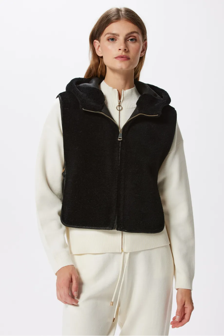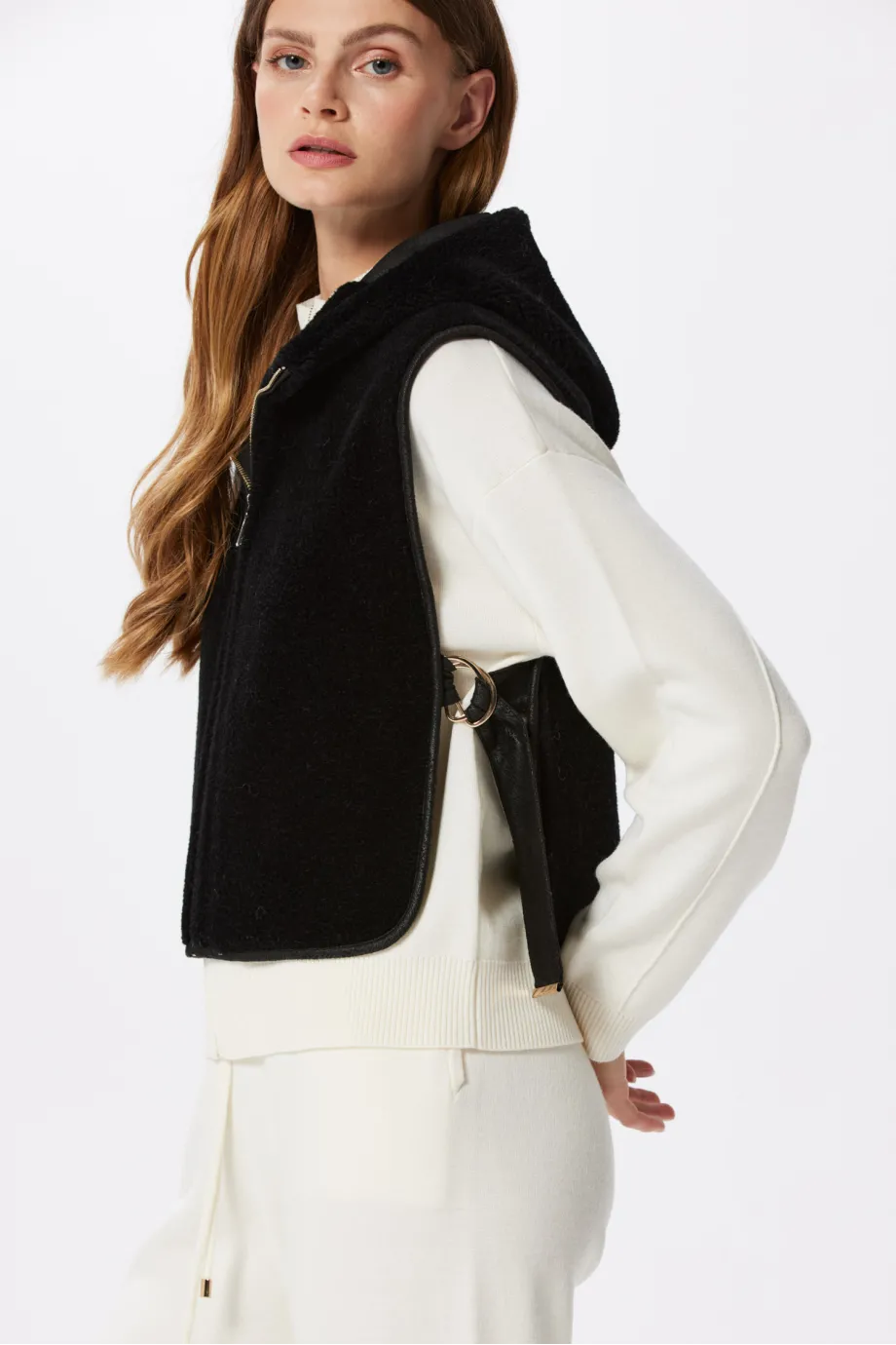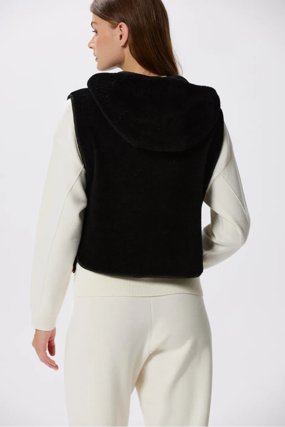 Czarna kamizelka z kapturem z wełny teddy bear