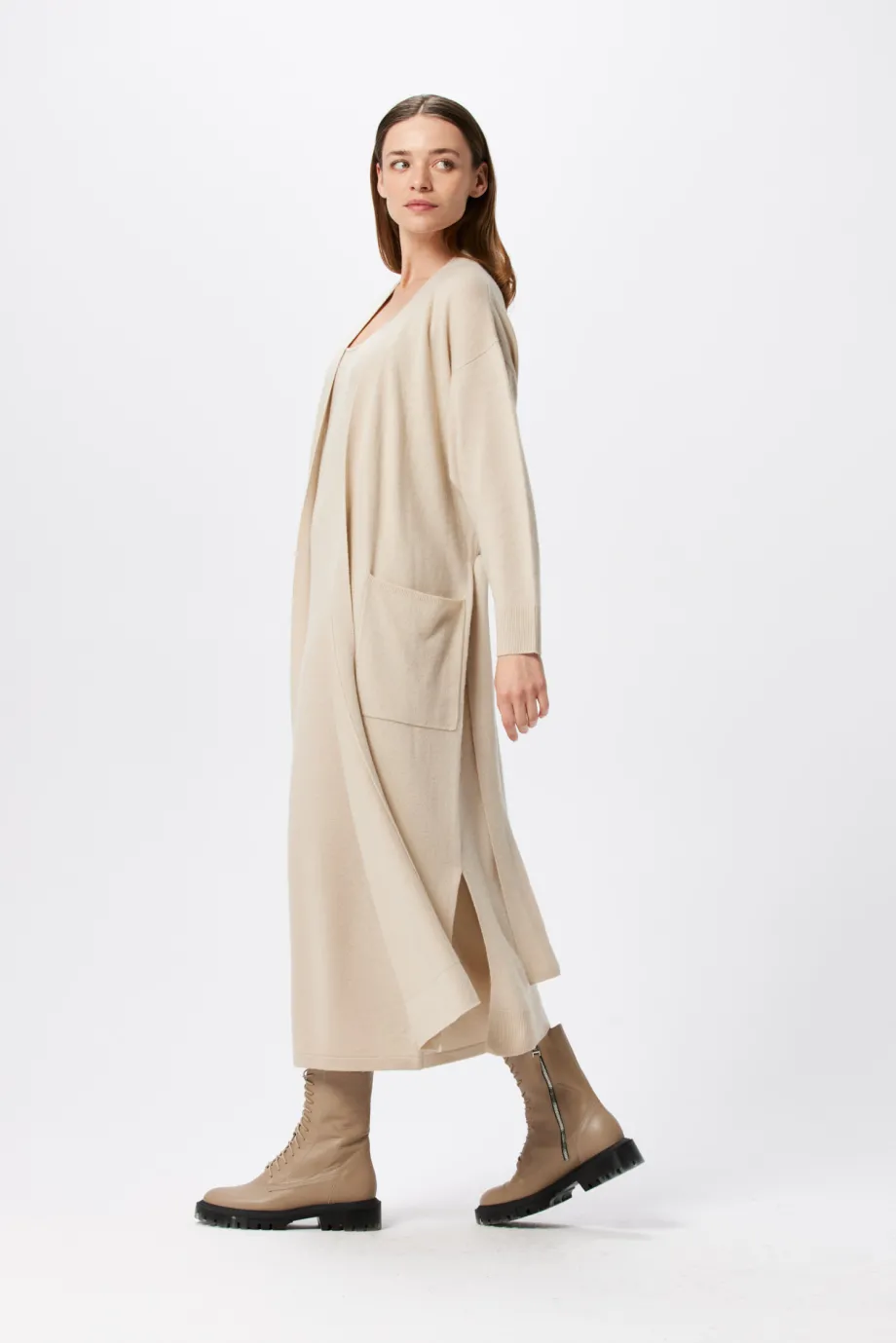 Długi kardigan z kaszmirem i wełną merynosową