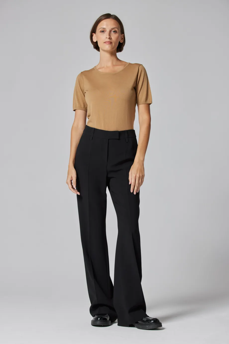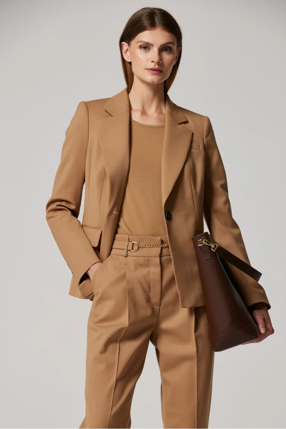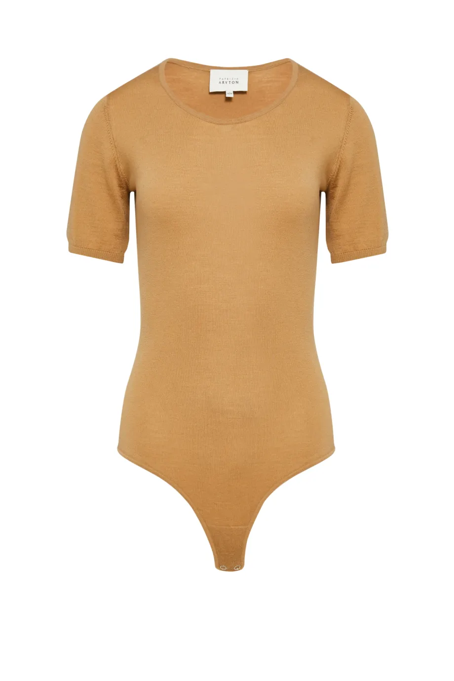 Body merino mają odcień camelu skręcającego w stronę barwy złotej. Z tej linii kolorystycznej pochodzi wiele ubrań i dodatków, dostępnych w naszej aktualnej ofercie. Camel łącz ze śmietaną, czernią, czystą bielą, granatem i popielem. Obecnie supermodne są także jego zestawienia z błękitem, taupe, militarną zielenią czy jeansem oraz sensualne total looki. Ten model z krótkim rękawem występuje również w wersji czekoladowej.