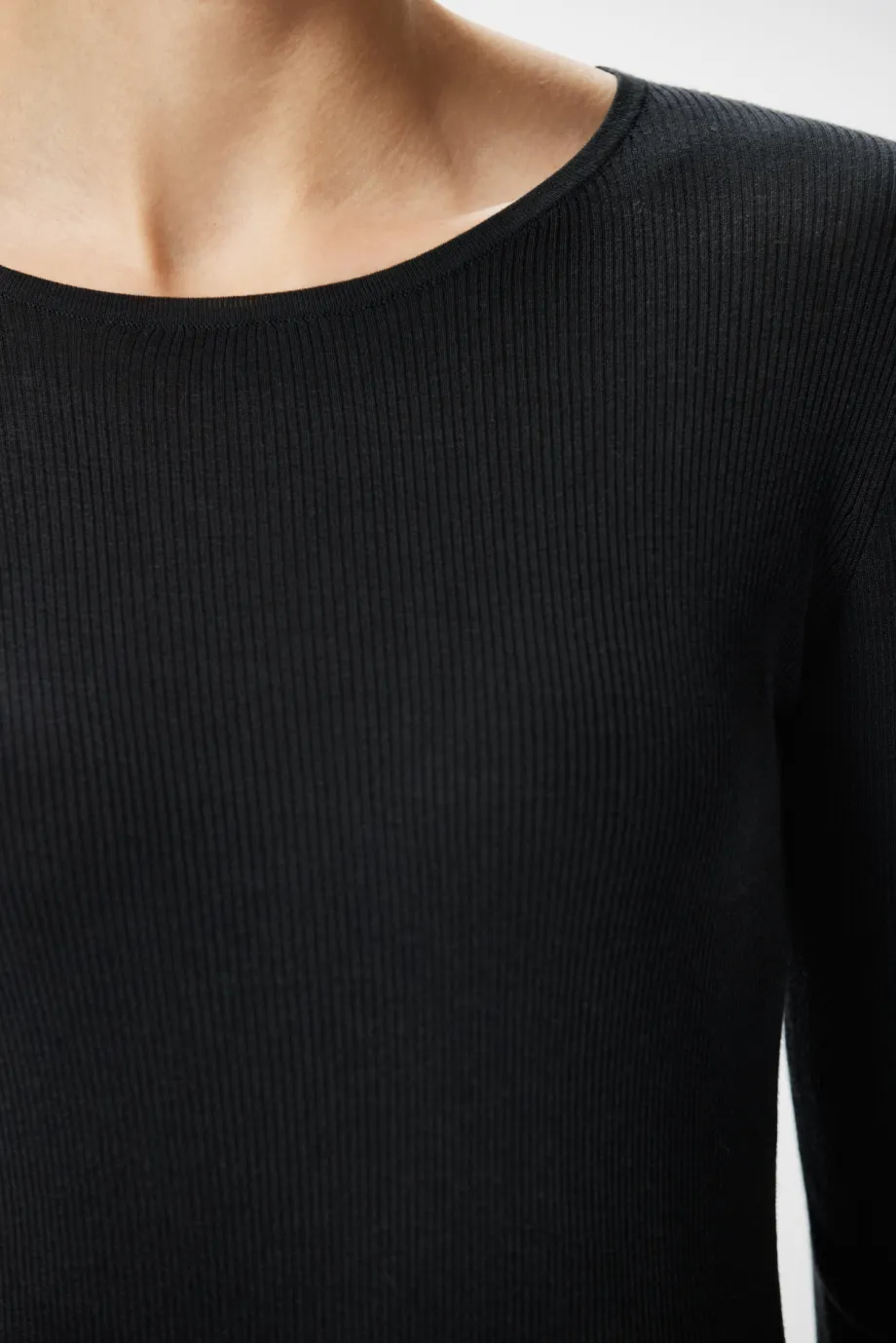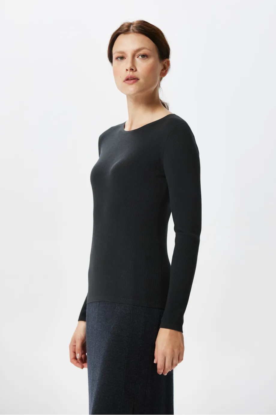 Szara bluzka z długim rękawem doskonale harmonizuje z wieloma elementami garderoby, od klasycznych czerni i granatów po bardziej wyraziste barwy. Model o kroju blisko ciała, z okrągłym dekoltem i długimi rękawami, został zaprojektowany z myślą o nowoczesnych kobietach, które pragną łączyć funkcjonalność z elegancją. Splot rib 2x2 nadaje dzianinie elastyczności i struktury, a uiglenie maszyny dziewiarskiej 16 GG świadczy o precyzji wykonania i dbałości o detale.