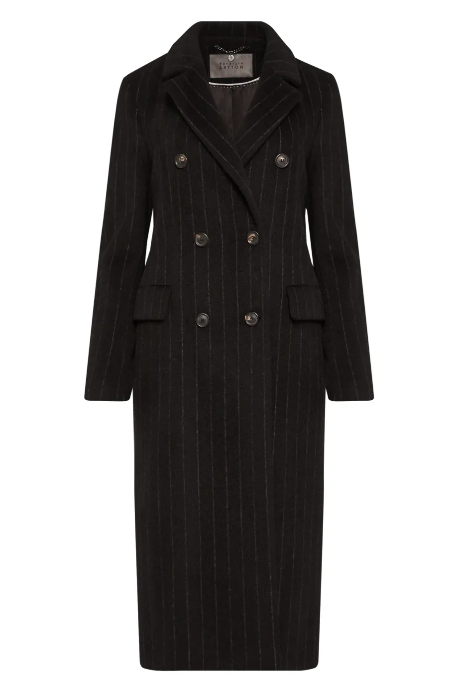 Od środka płaszcz wyposażono w dodatkowy guzik z orzecha corozo, dla lepszego dopasowania i pozycjonowania okrycia na sylwetce. Detalem, który stanowi wizytówkę mistrzowskiego krawiectwa Patrizia Aryton jest m.in. ozdobny piping na styku podszewki i tkaniny wierzchniej.