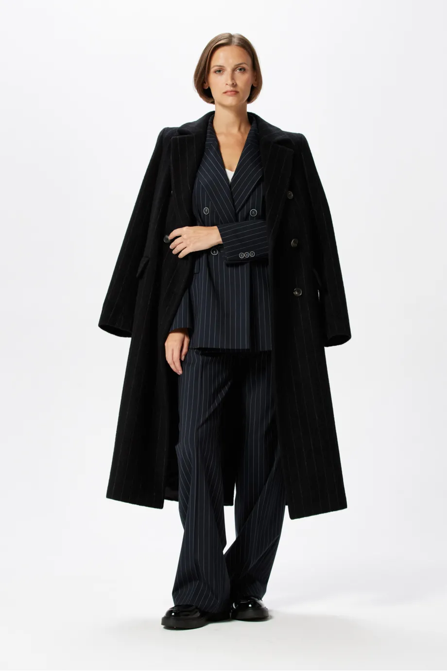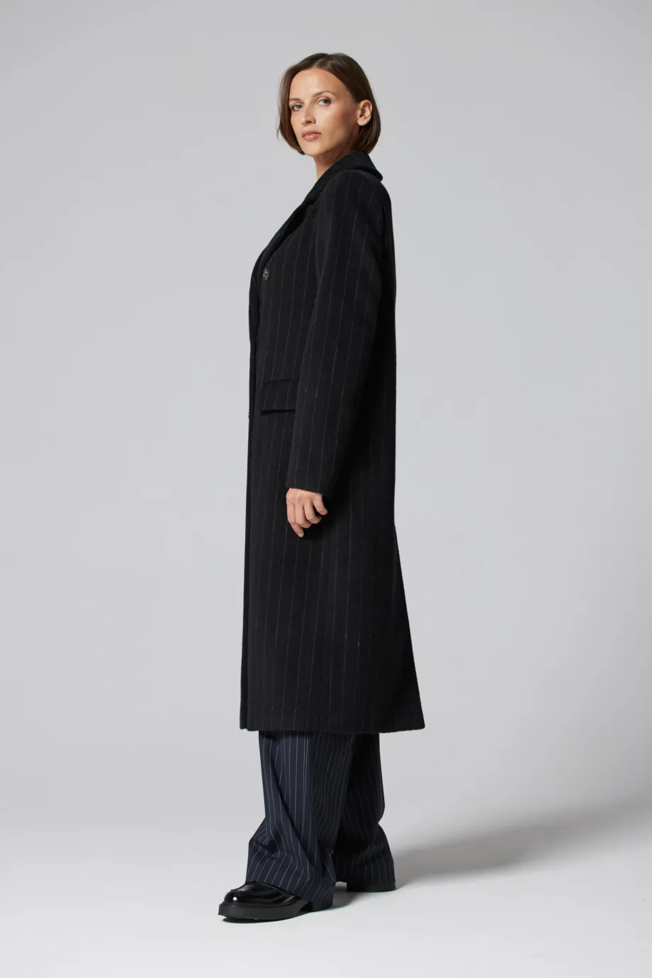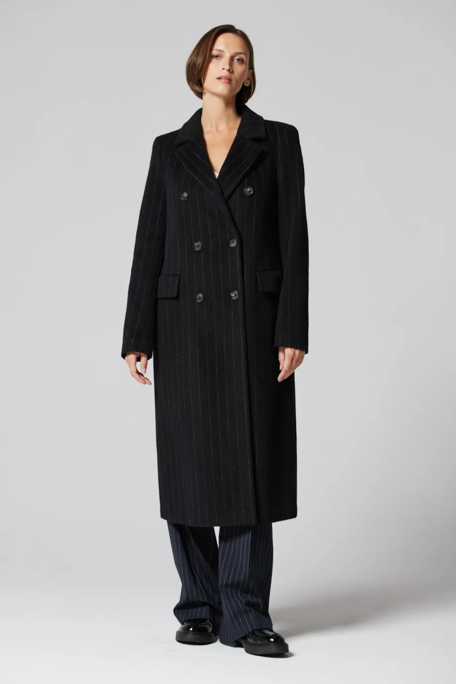 - Wełniany płaszcz dwurzędowy z moherem