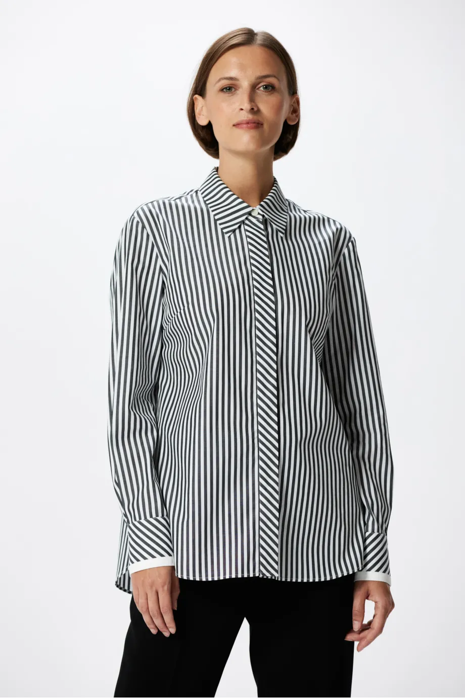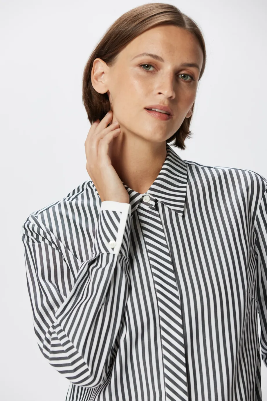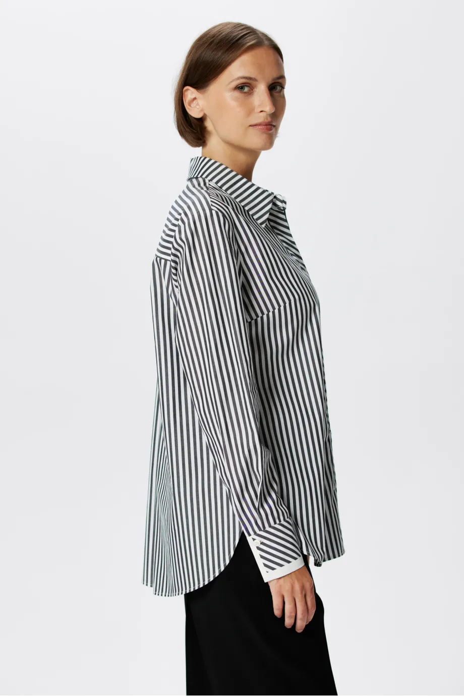 Koszula w paski Patrizia Aryton jest modelem całorocznym. Uszyto ją z wysokogatunkowej bawełny, która słynie z oddychalności i miękkości. Delikatna dla skóry tkanina pochodzi od dostawcy legitymującego się certyfikatem GOTS, a sam produkt został wyróżniony znakiem STANDARD 100 by OEKO-TEX®. Luźna koszula 100% bawełna jest dostępna w rozmiarach 34-46. Jej pielęgnacja ogranicza się do prania w pralce w temp. 40 stopni i suszenia na wisząco.
