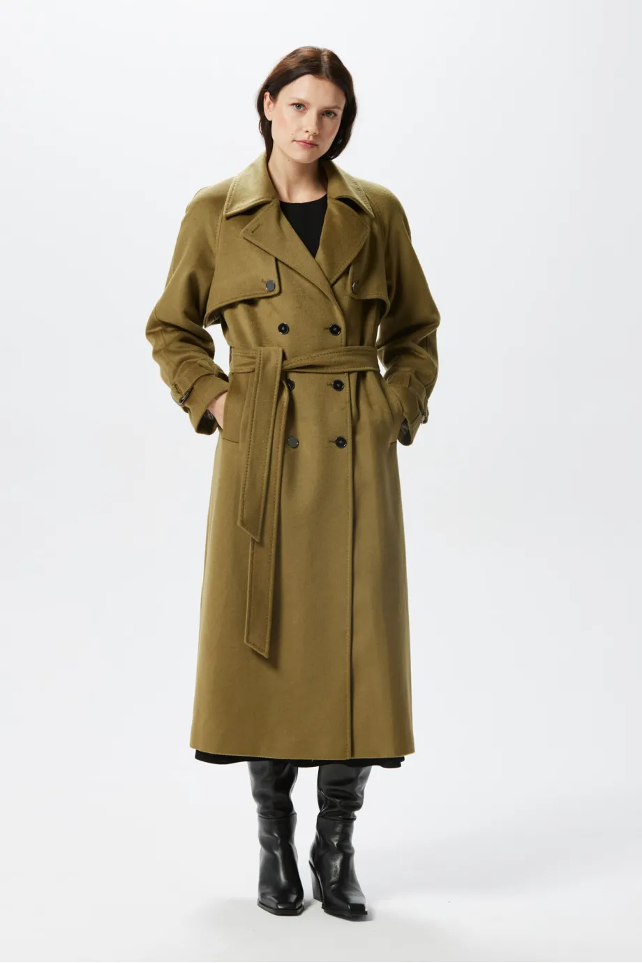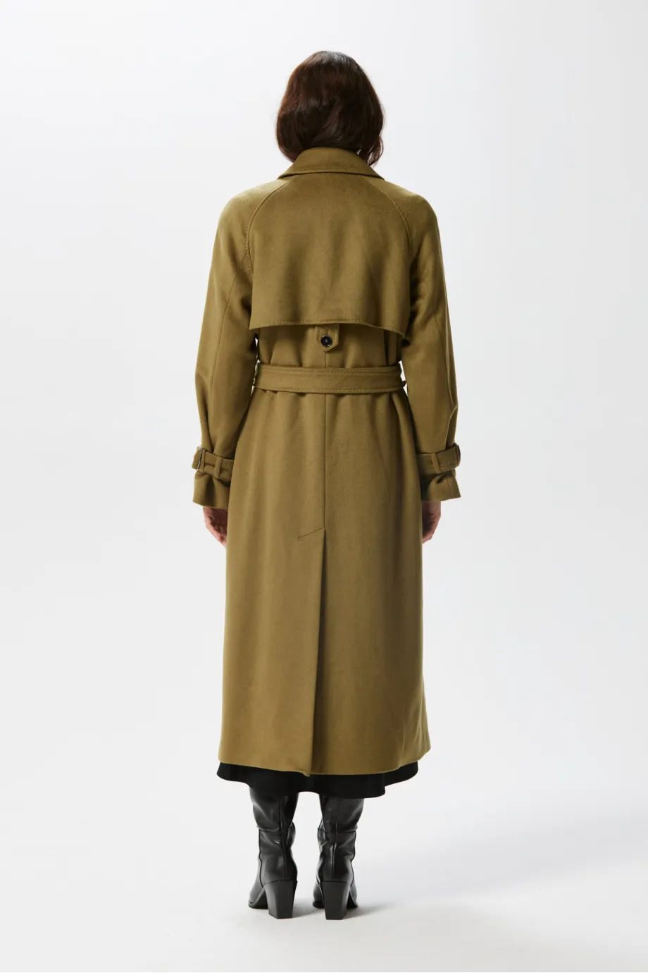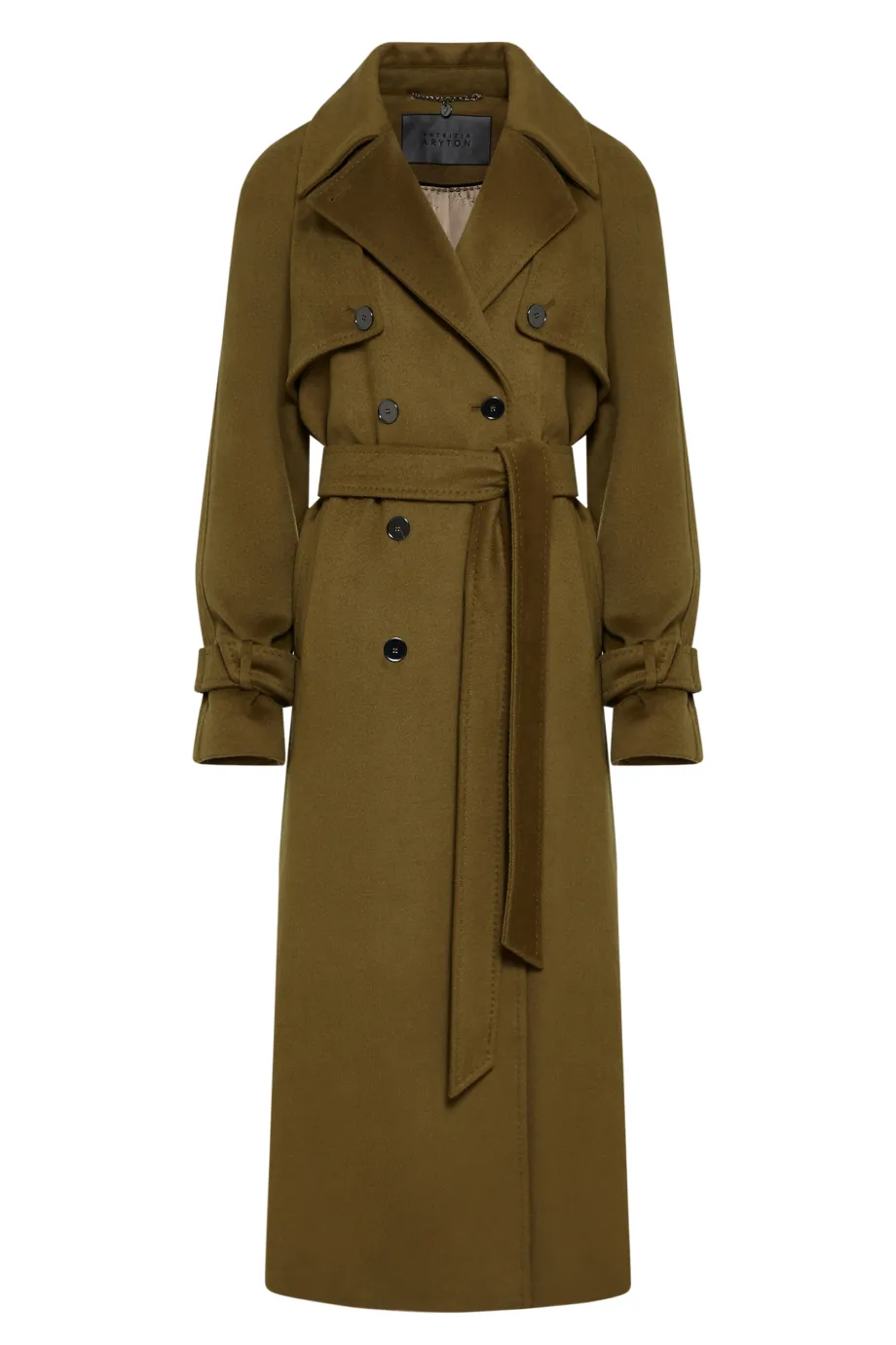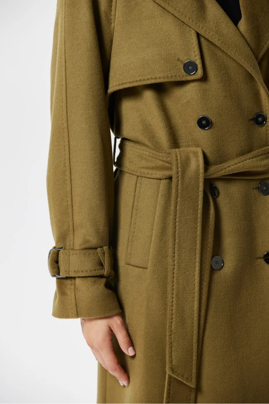 Zielony wełniany trencz z jedwabiem i kaszmirem