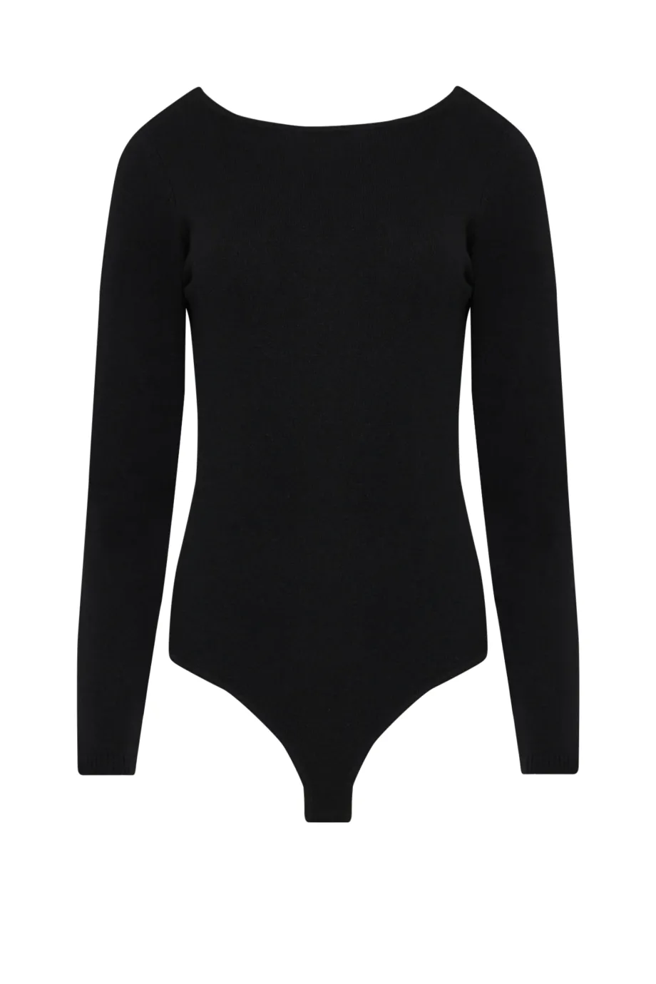 Czarne gładkie body z długim rękawem i dekoltem na plecach