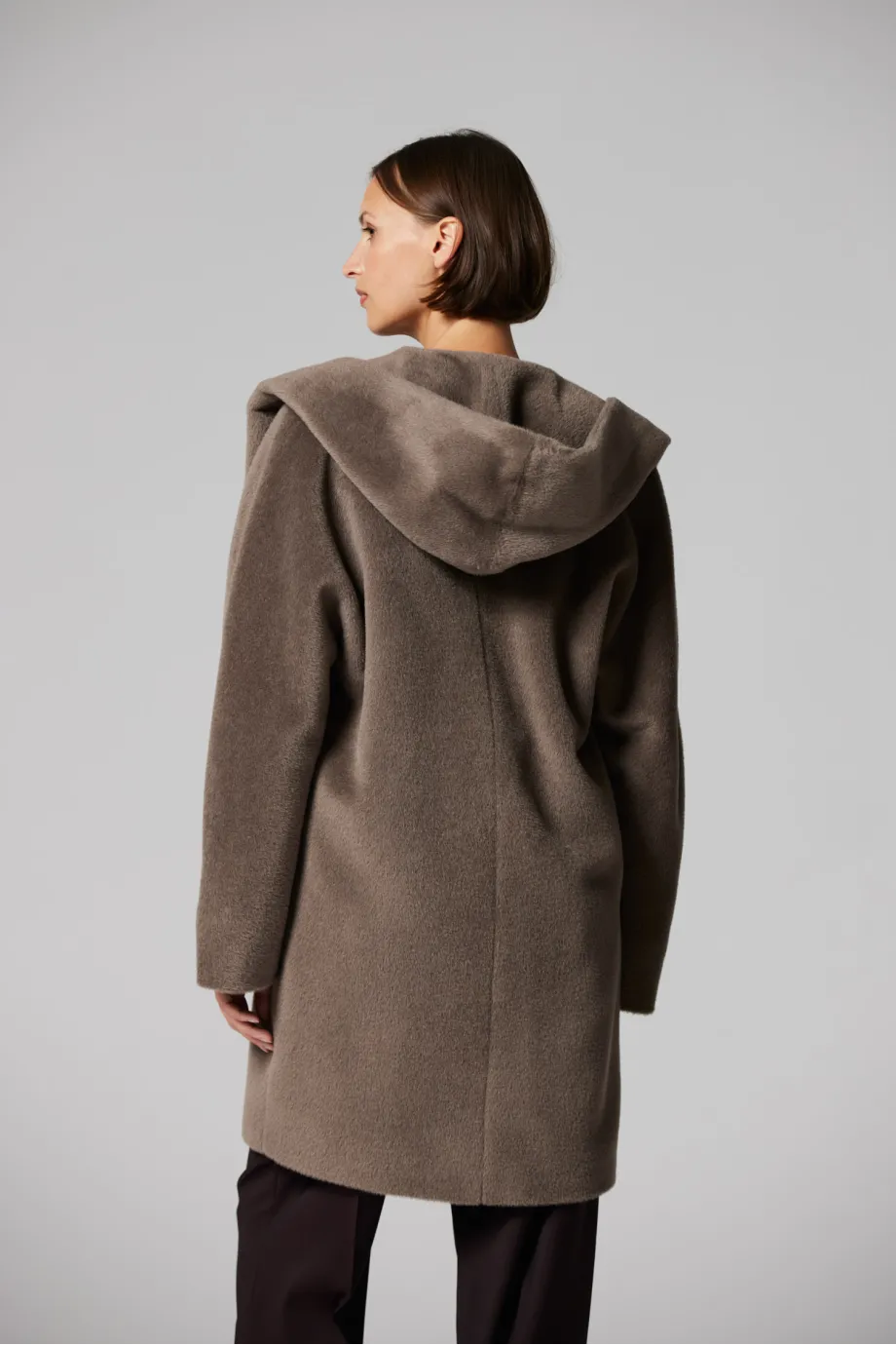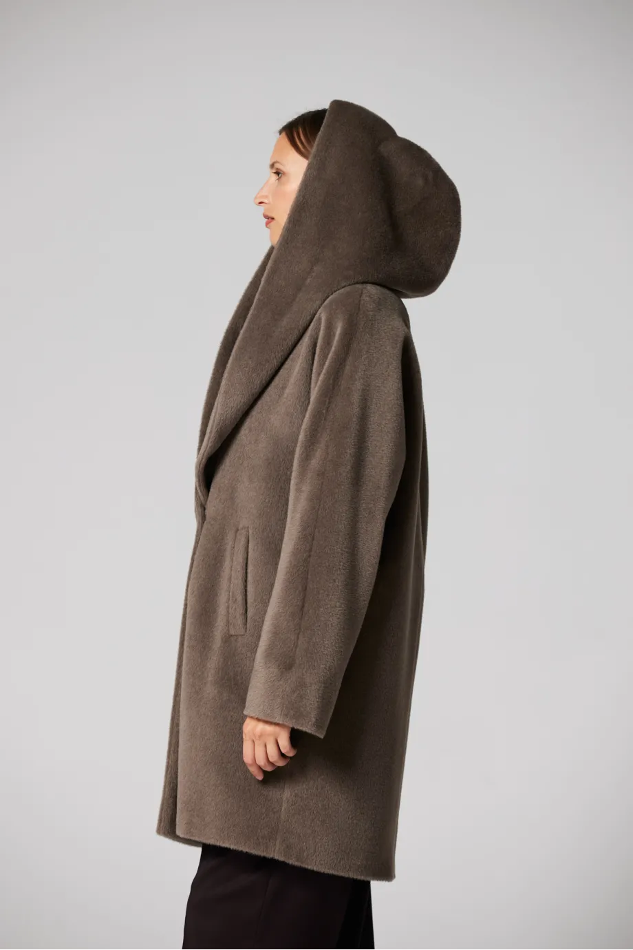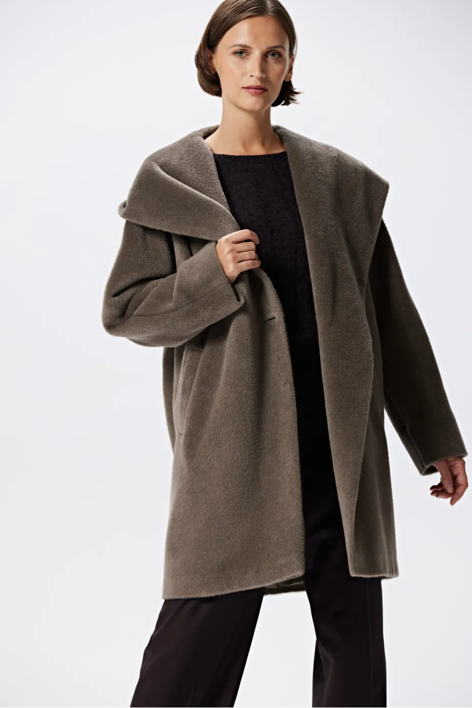 Krótki wełniany płaszcz z kapturem z wełną suri alpaki