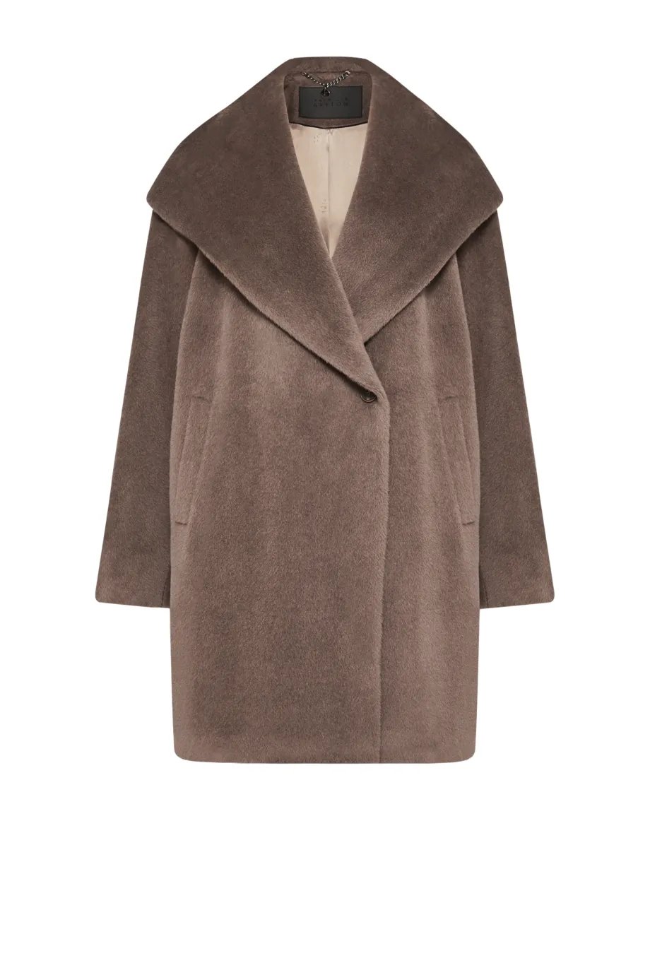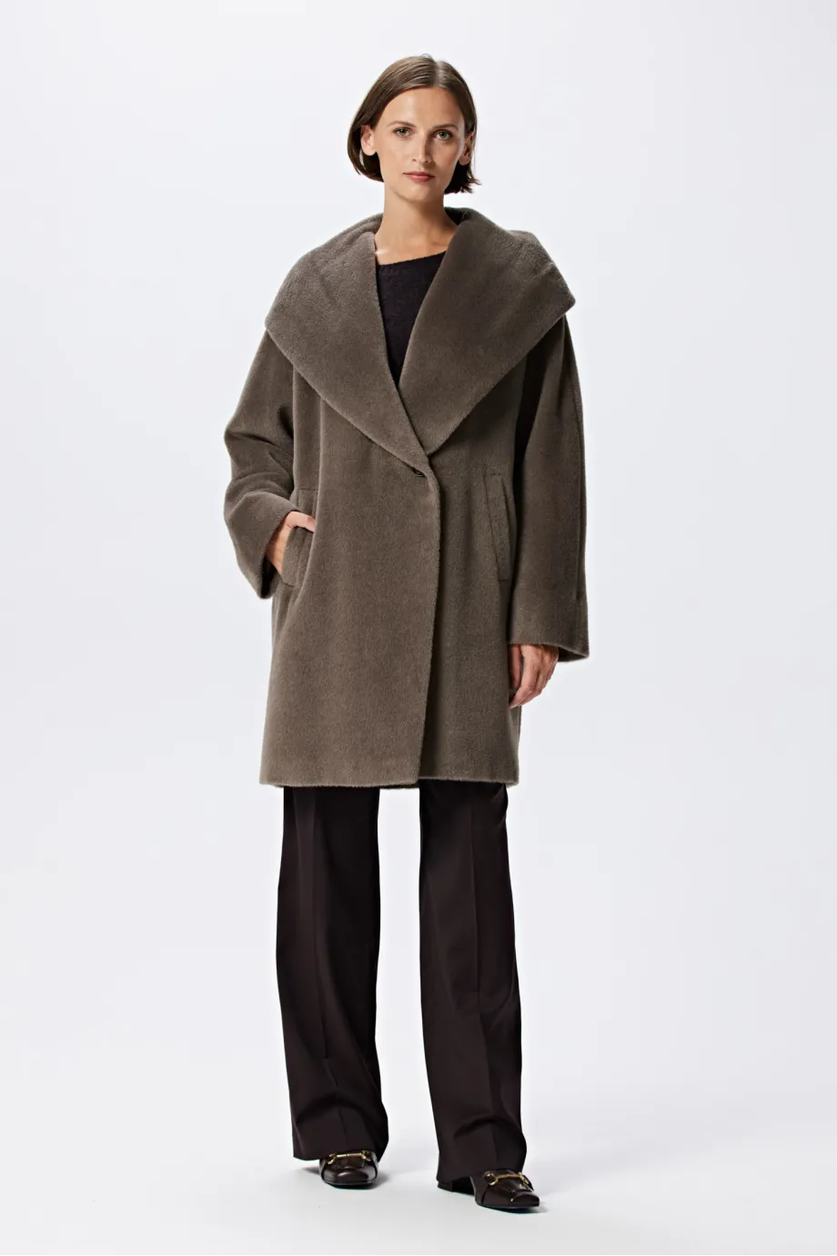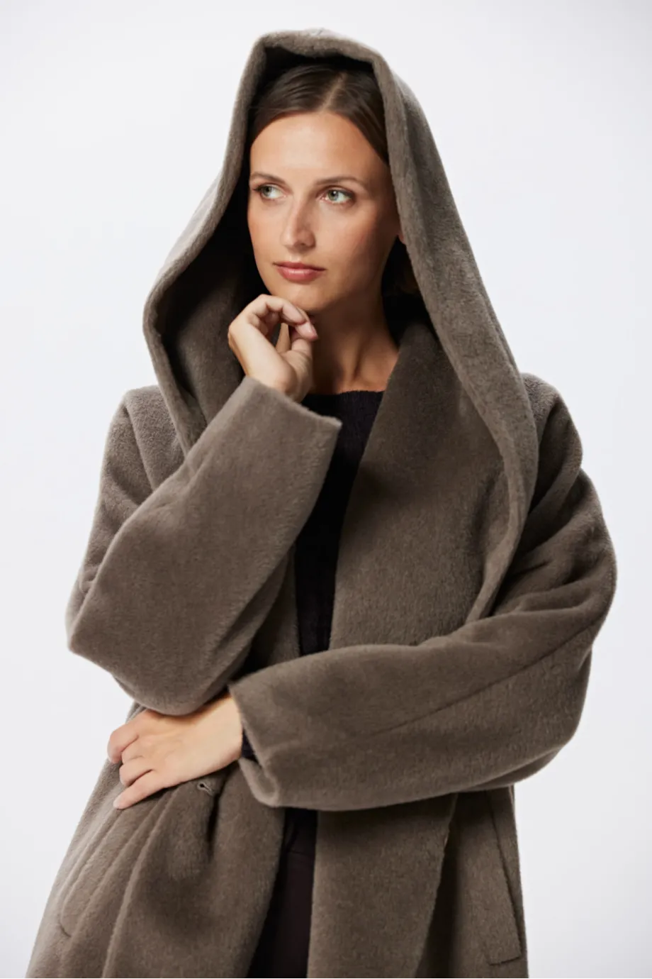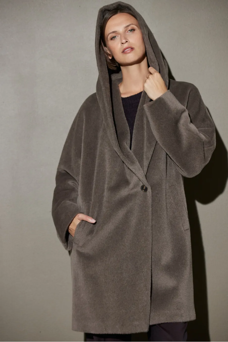 Krótki wełniany płaszcz z kapturem z wełną suri alpaki