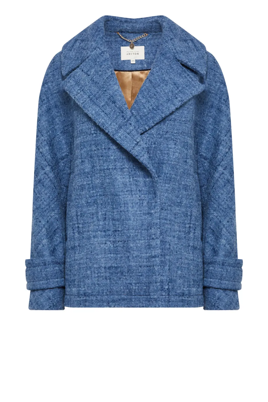 Kurtka z kołnierzem Patrizia Aryton posiada zapięcie na guziki z kości bawolej, ale kapitalnie prezentuje się także rozpięta. Przemyślany w każdym detalu projekt został zrealizowany z najwyższą starannością, także w elementach wykończenia. Przykładem jest choćby ozdobny piping po wewnętrznej stronie kurtki. Jego kolor może być wskazówką, z jakimi barwami warto łączyć błękit w tym sezonie, aby wyróżnić się wysmakowanym stylem.