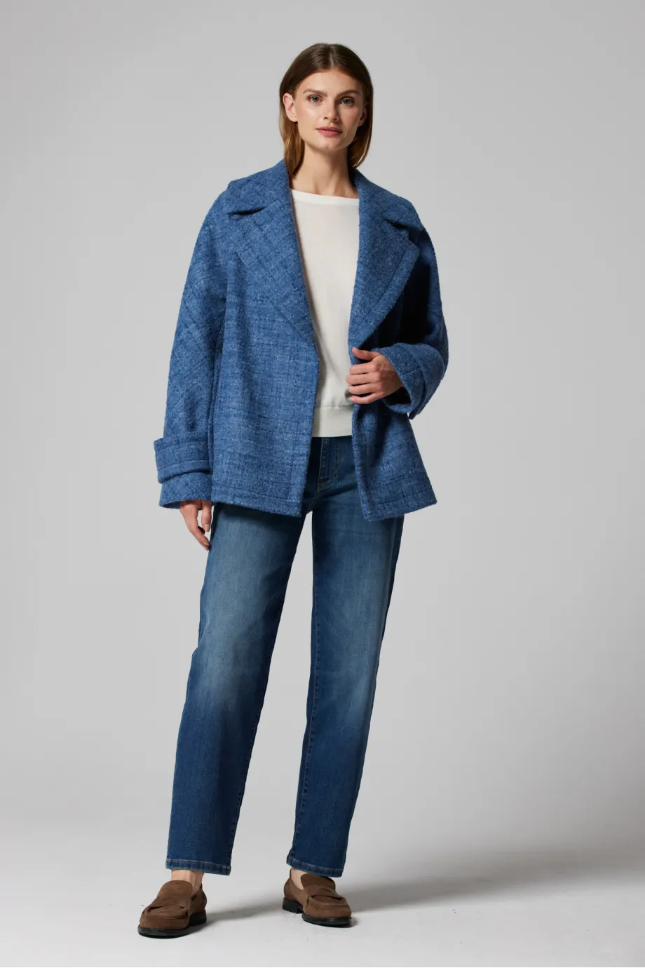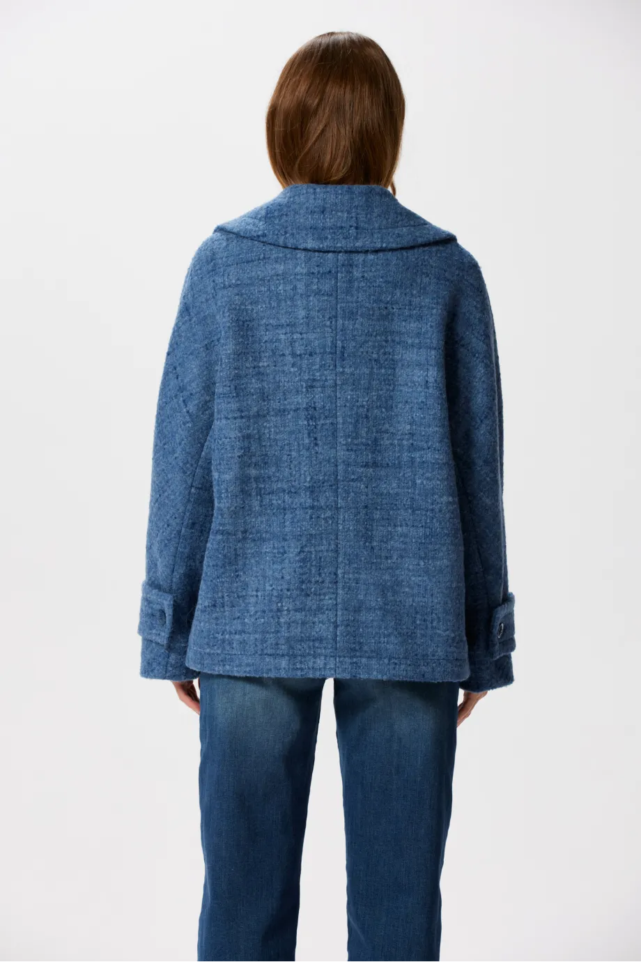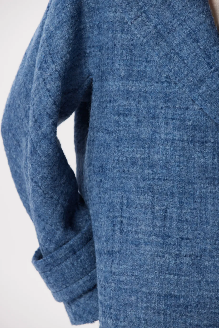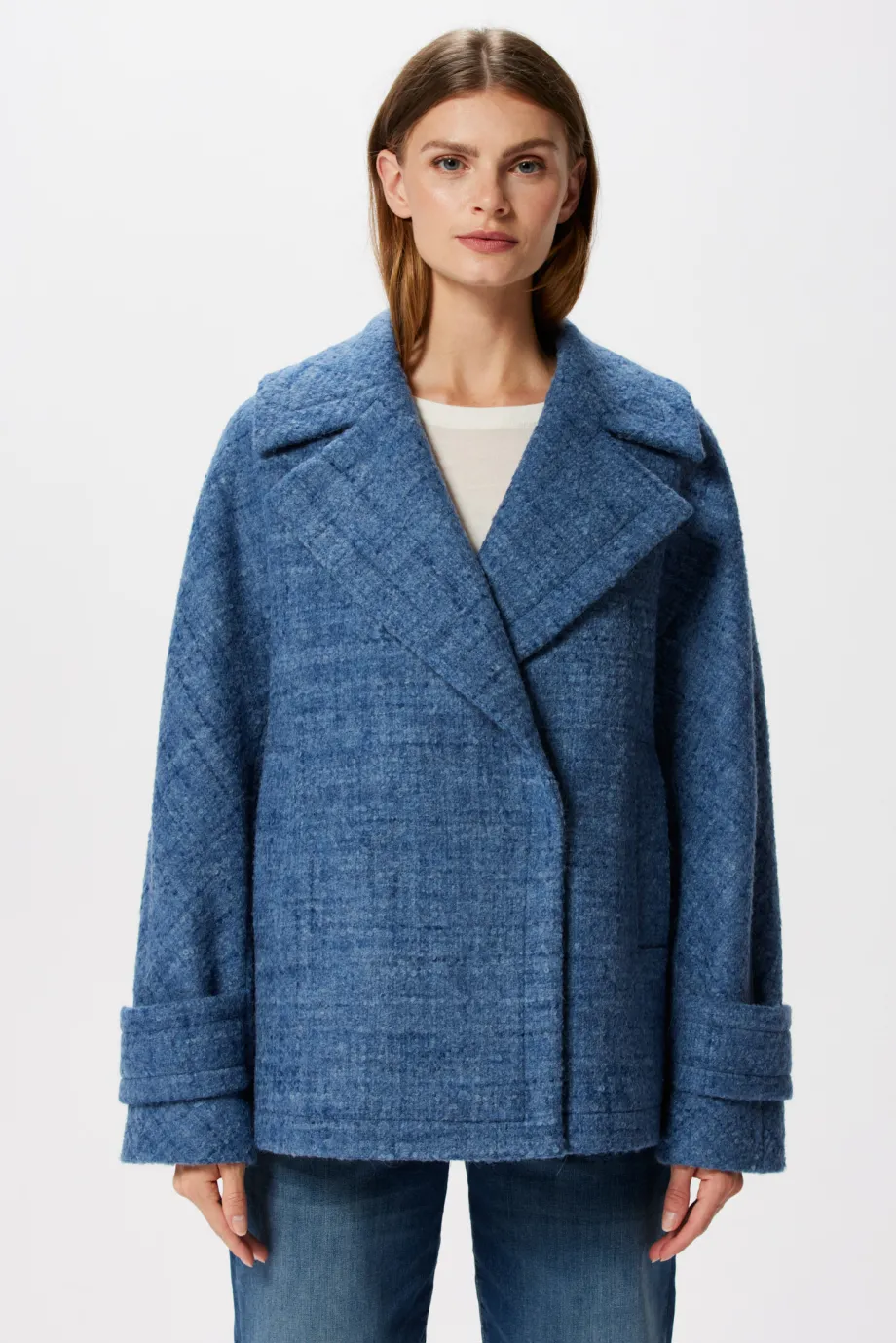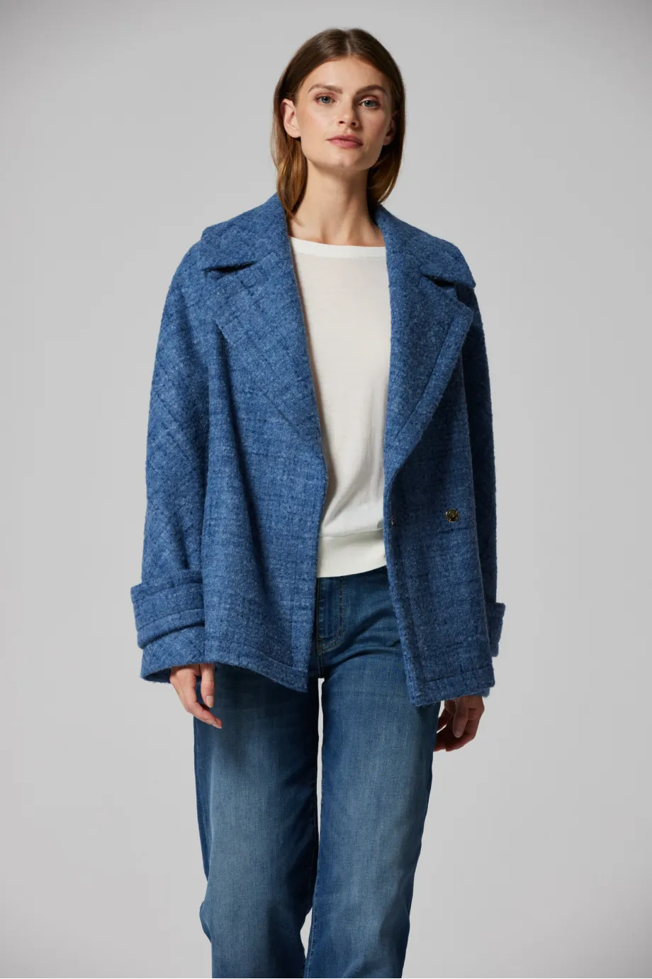 Krótka forma też może być ciepła. Kurtka z wełny alpaki to nasza propozycja eleganckiego okrycia w swobodnej formie i oryginalnym kolorze. Przypomina marynarkę oversize i z powodzeniem może ją zastępować, a podczas chłodniejszych dni stanowić główną odzież wierzchnią, narzucaną na smart casualowe i wizytowe sety. Błękitna kurtka damska Patrizia Aryton doda wyważonej wyrazistości i świeżości każdej stylizacji – przekonaj się sama!