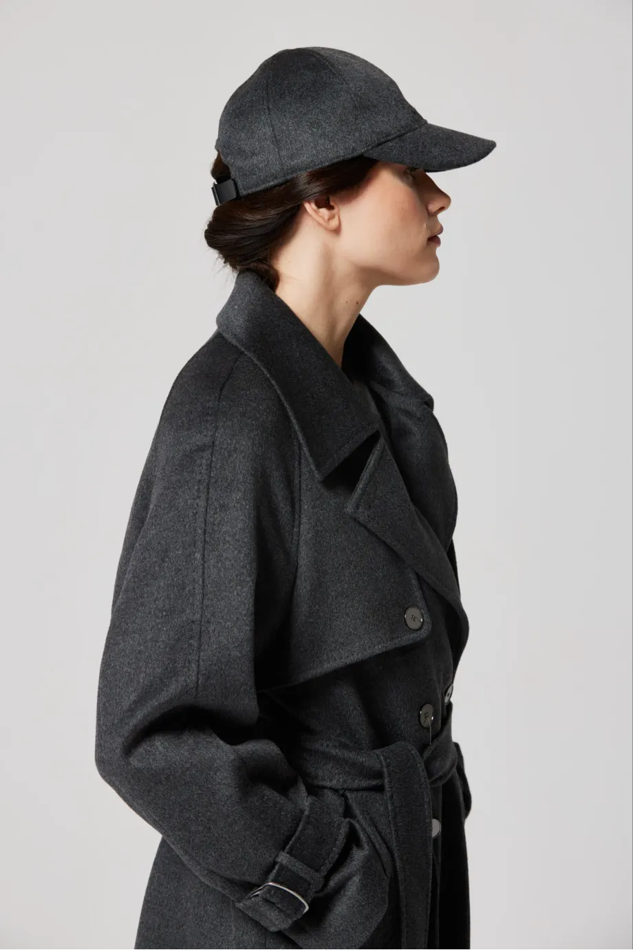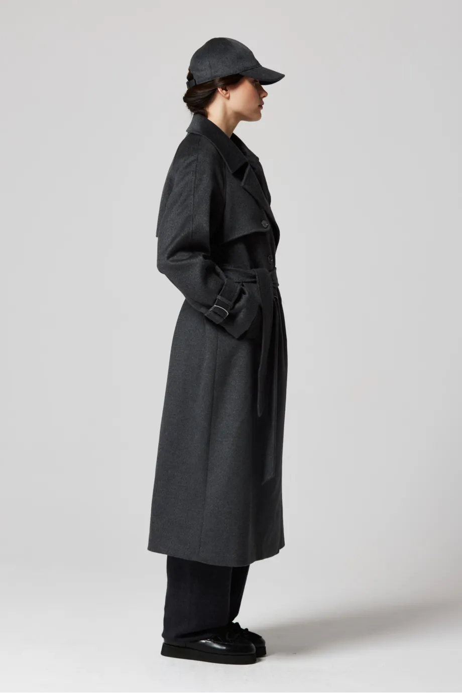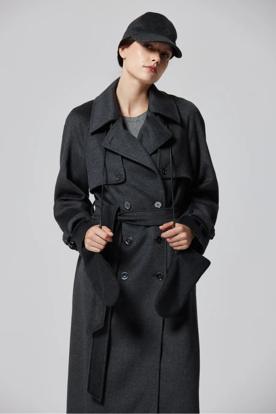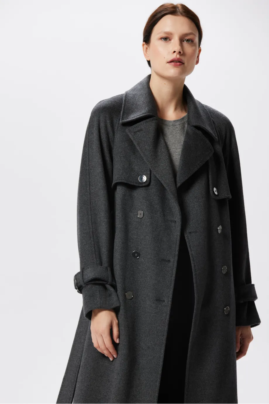 Szary wełniany trencz z jedwabiem i kaszmirem